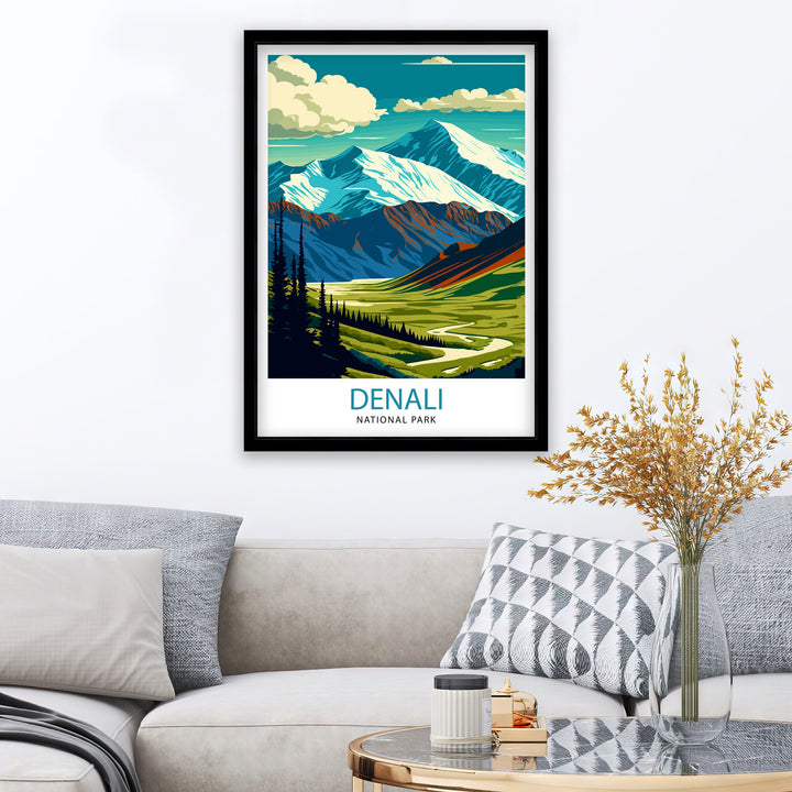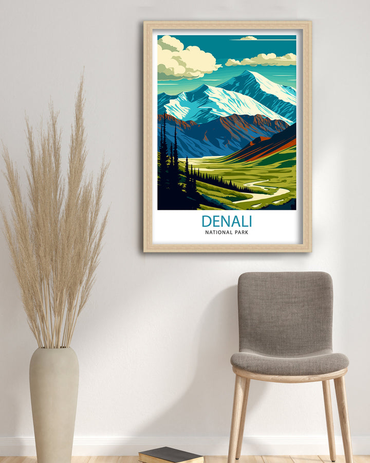 20% OFF all prints, frames & canvases with code 20BACKExperience the rugged beauty of Denali National Park in Alaska with this stunning travel print. Featuring the majestic peaks of the Denali mountain range, vibrant wilderness, and abundant wildlife, this artwork captures the essence of this iconic national park. Bring the spirit of adventure and the allure of Alaska into your home or office with this Denali National Park travel print.