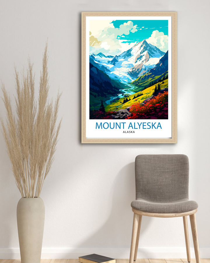 20% OFF all prints, frames & canvases with code 20BACKImmerse yourself in the majestic beauty of Mount Alyeska, Alaska with this captivating travel print. Set against the backdrop of pristine wilderness and snow-capped peaks, Mount Alyeska stands as a testament to Alaska's rugged charm. This artwork captures the mountain's grandeur, offering a striking view for any room. Elevate your space with a hint of Alaskan wilderness.
