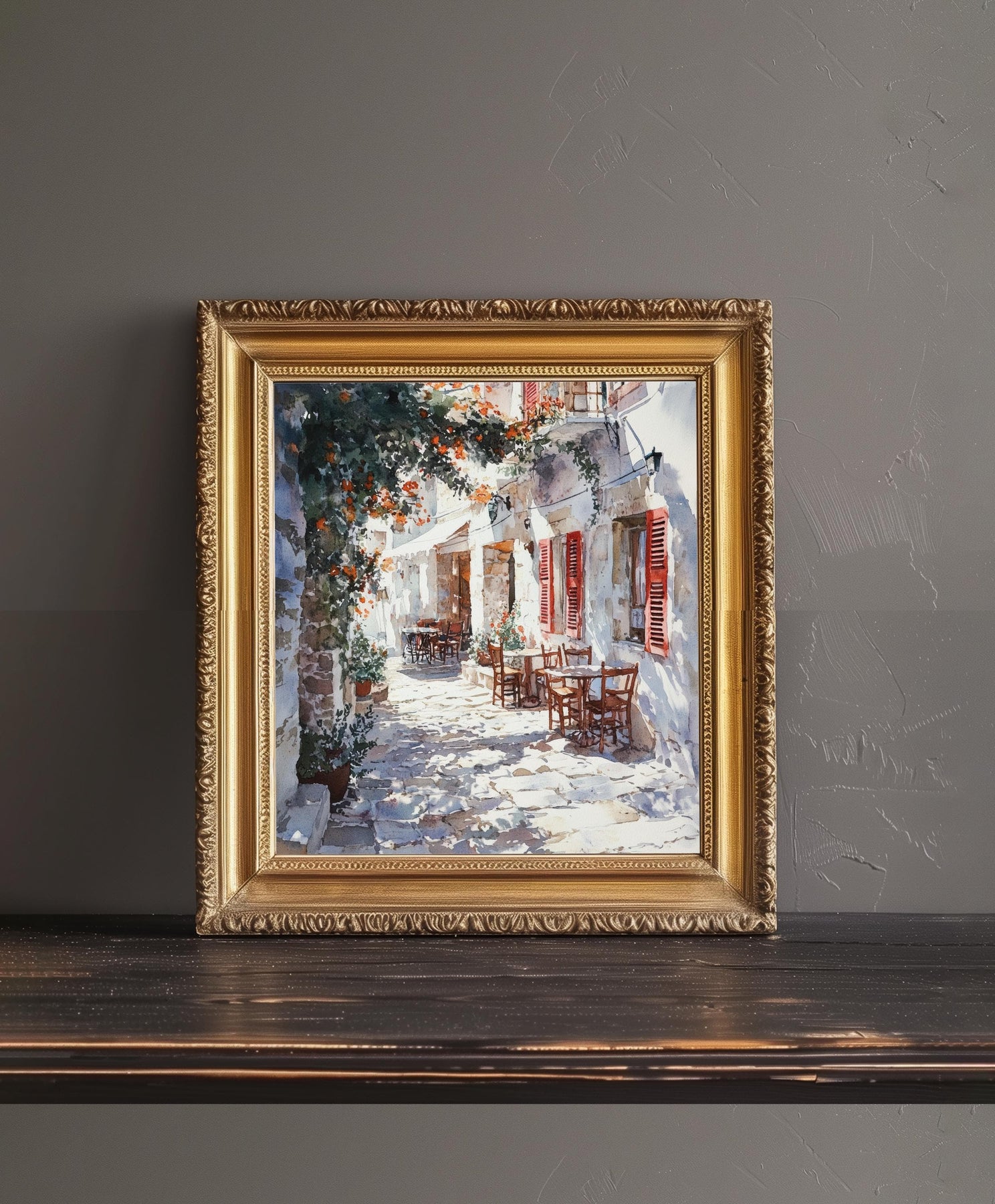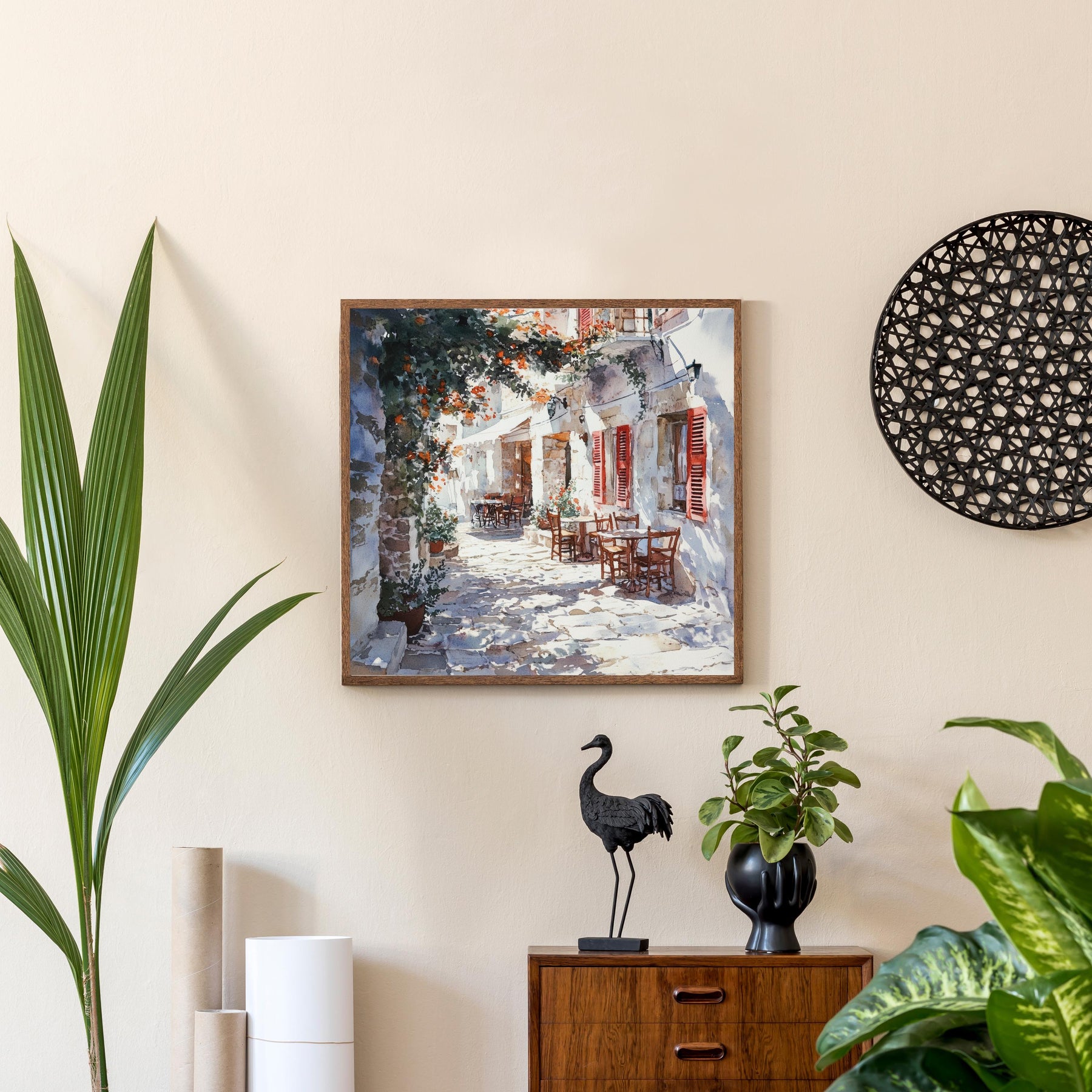 Celebrate the beauty of the Cyclades with this Naxos Greece watercolour landscape painting poster. Known for its whitewashed villages, turquoise waters, and ancient ruins, Naxos is the largest and most authentic of the Greek islands. The soft washes of watercolour capture its serene coastal charm, perfect for travellers, island lovers, and admirers of Mediterranean scenery.