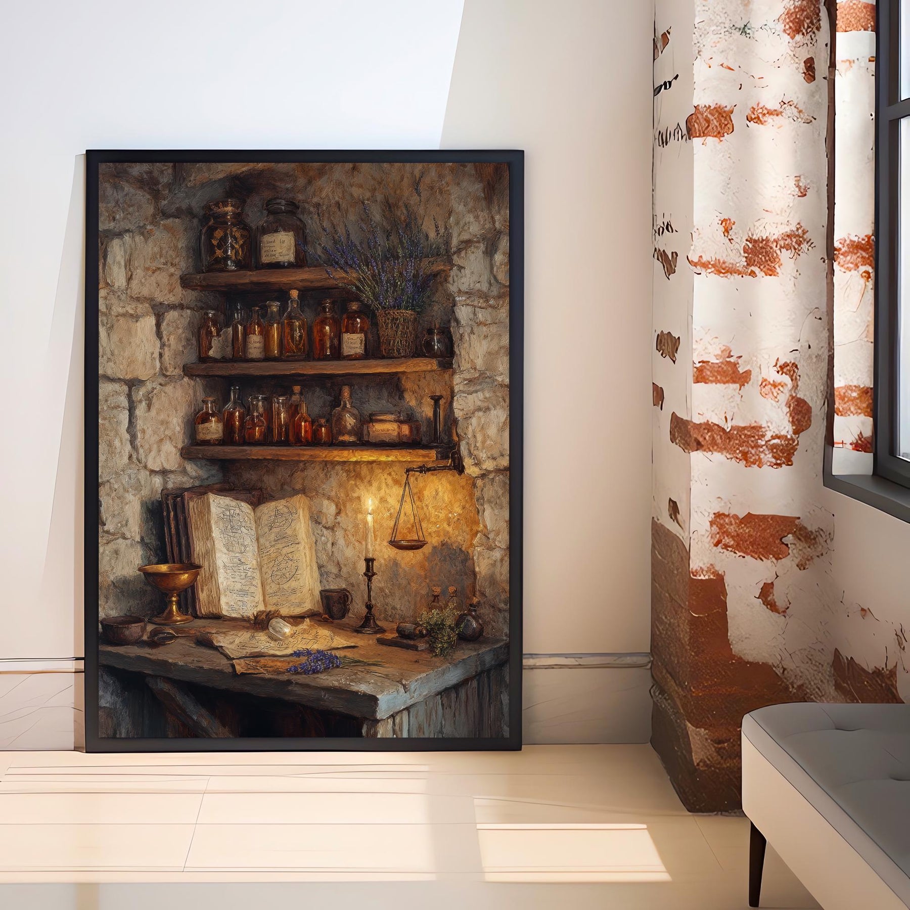 Candlelit Alchemy Poster Dark Academia Art Cottagecore Decor Vintage Still Life Illustration Rustic Gothic Wall Art Poster Print