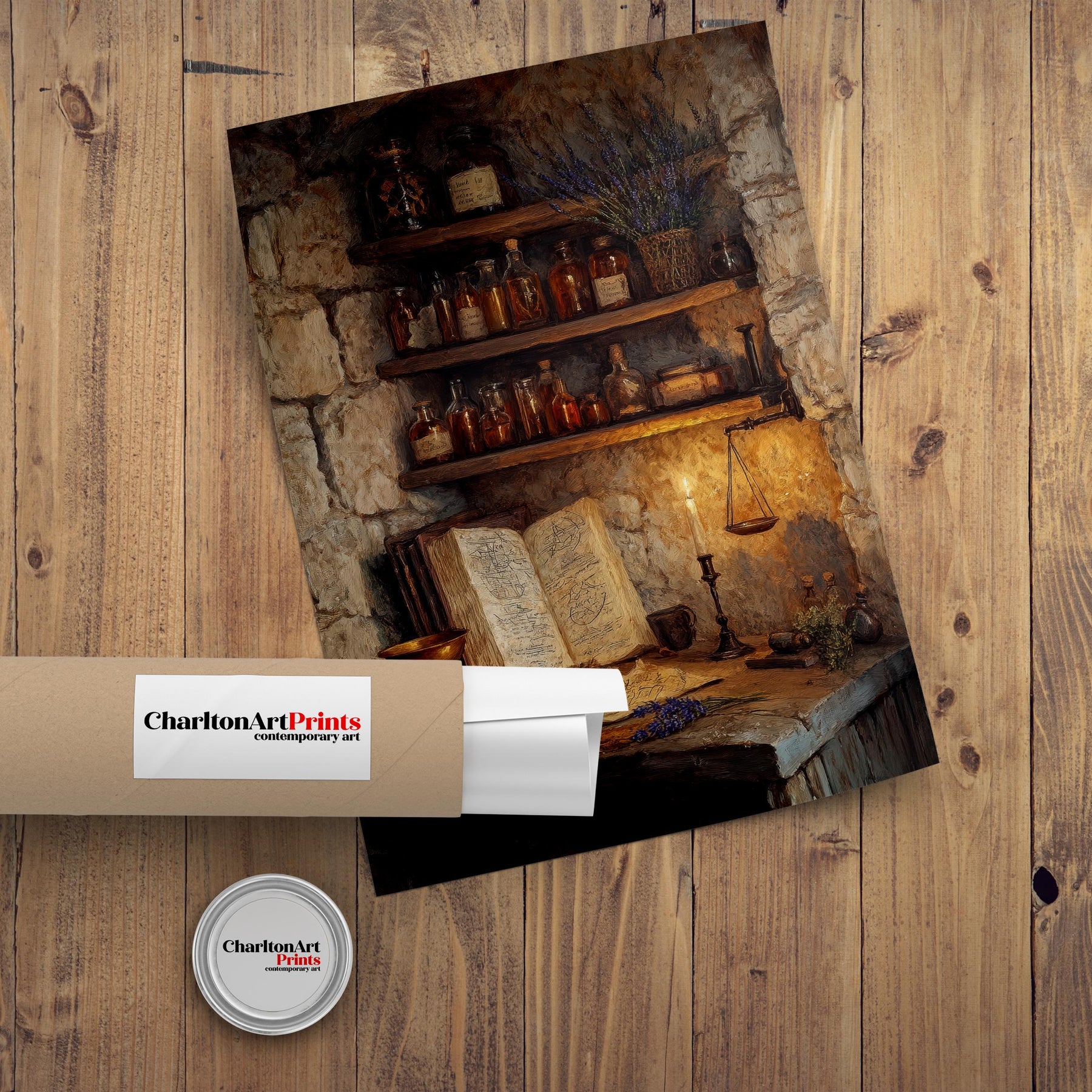Immerse yourself in the mysterious world of study and sorcery with our Candlelit Alchemy Poster, a captivating artwork that blends the intellectual elegance of dark academia with the rustic charm of cottagecore. This vintage-inspired illustration depicts an alchemist’s table illuminated by candlelight, featuring glass bottles, old books, herbs, and handwritten notes, evoking curiosity, wisdom, and quiet magic. Perfect for lovers of gothic interiors, moody studies, and vintage charm. Printed on high-quality, eco-friendly paper for lasting beauty and timeless sophistication.