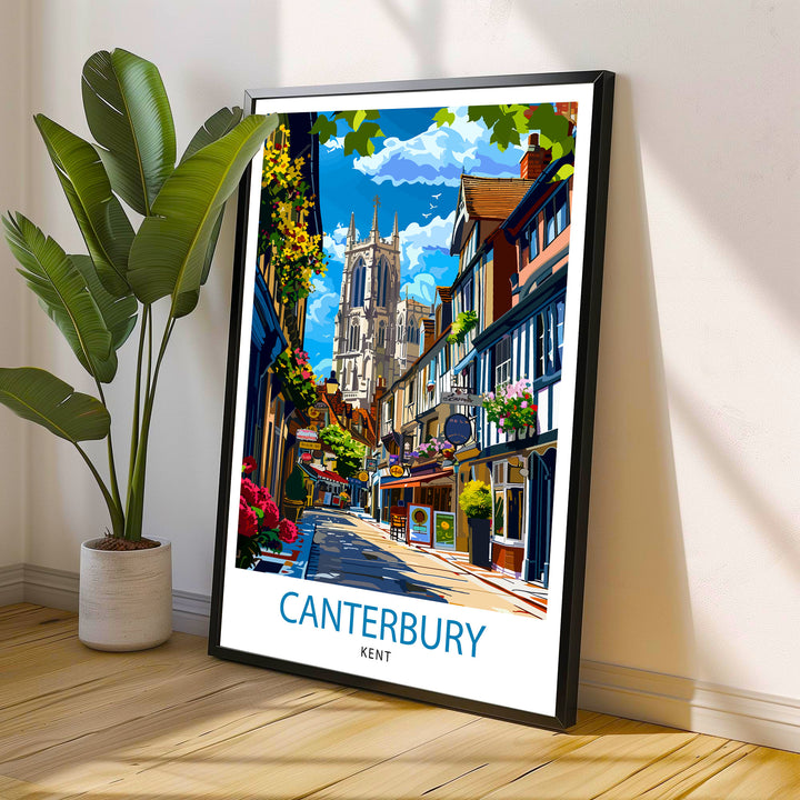 Bring the charm and history of Canterbury in Kent to your home with this captivating travel print. Featuring the iconic landmarks and picturesque streets of Canterbury, this print is a perfect addition to your wall decor, adding a touch of elegance and heritage to any space.