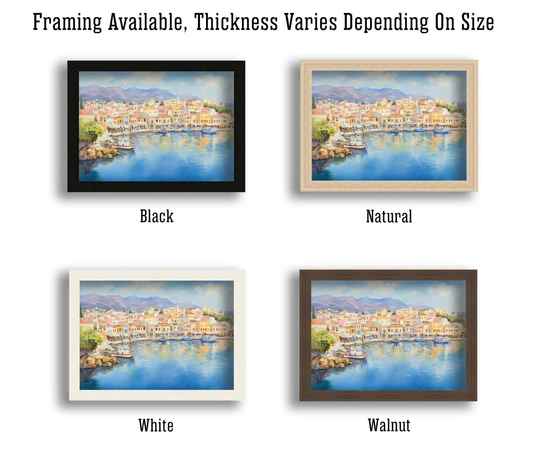 Bring the beauty of Crete into your home with this Agios watercolour painting poster. Featuring whitewashed buildings, a tranquil harbour, and turquoise waters under bright Mediterranean skies, this artwork captures the charm of Agios Nikolaos, one of Crete’s most picturesque towns. The soft washes of watercolour highlight its relaxed coastal atmosphere, perfect for travellers and island lovers alike.