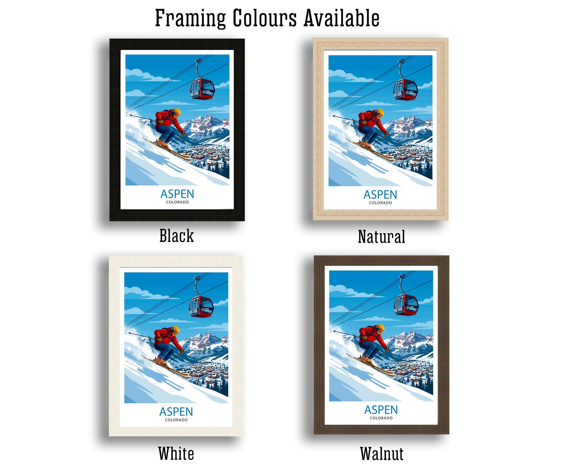 Bring the spirit of the Rocky Mountains into your home with this Aspen Colorado ski poster print. Featuring snow-covered peaks, alpine lodges, and crisp blue skies, this artwork captures the essence of one of America’s most famous ski destinations. Perfect for skiers, travellers, and admirers of mountain scenery, it adds a stylish winter touch to any wall decor.