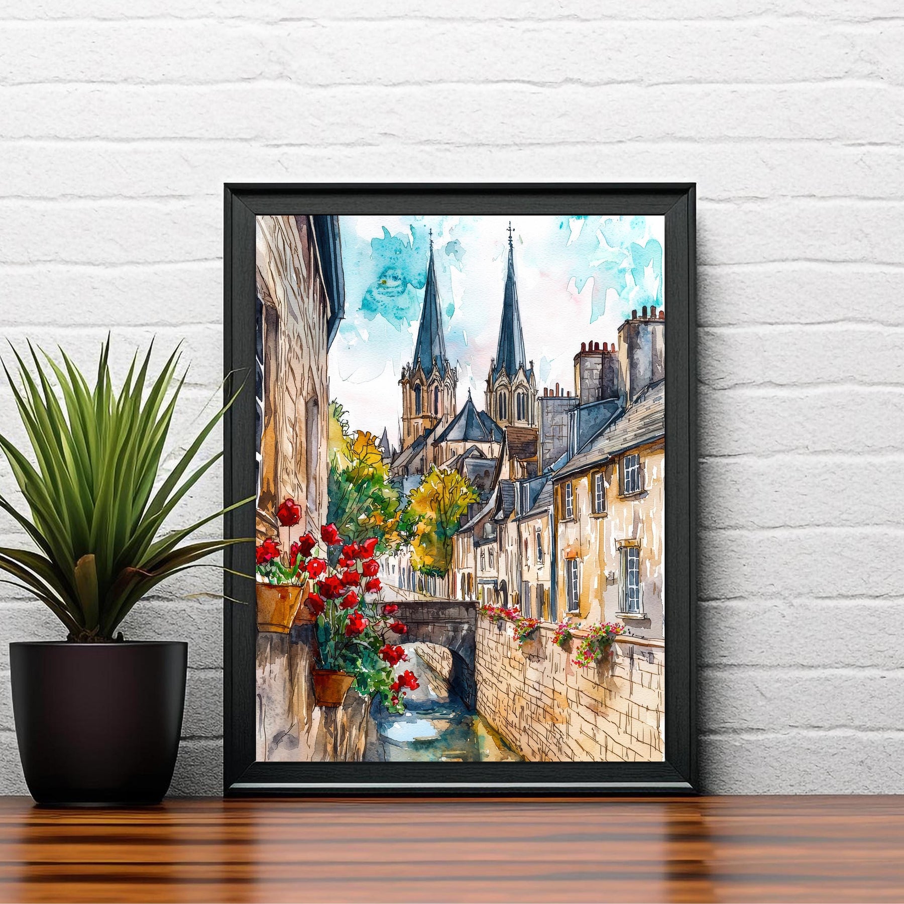 Celebrate the timeless beauty of Normandy with this watercolor painting of Bayeux, a charming French town known for its medieval streets, historic cathedral, and world-famous tapestry. The soft washes of color capture the character and elegance of this picturesque destination, making it a perfect choice for lovers of French history, European travel, and classic architecture. Ideal as a thoughtful gift or as a striking piece of wall decor.