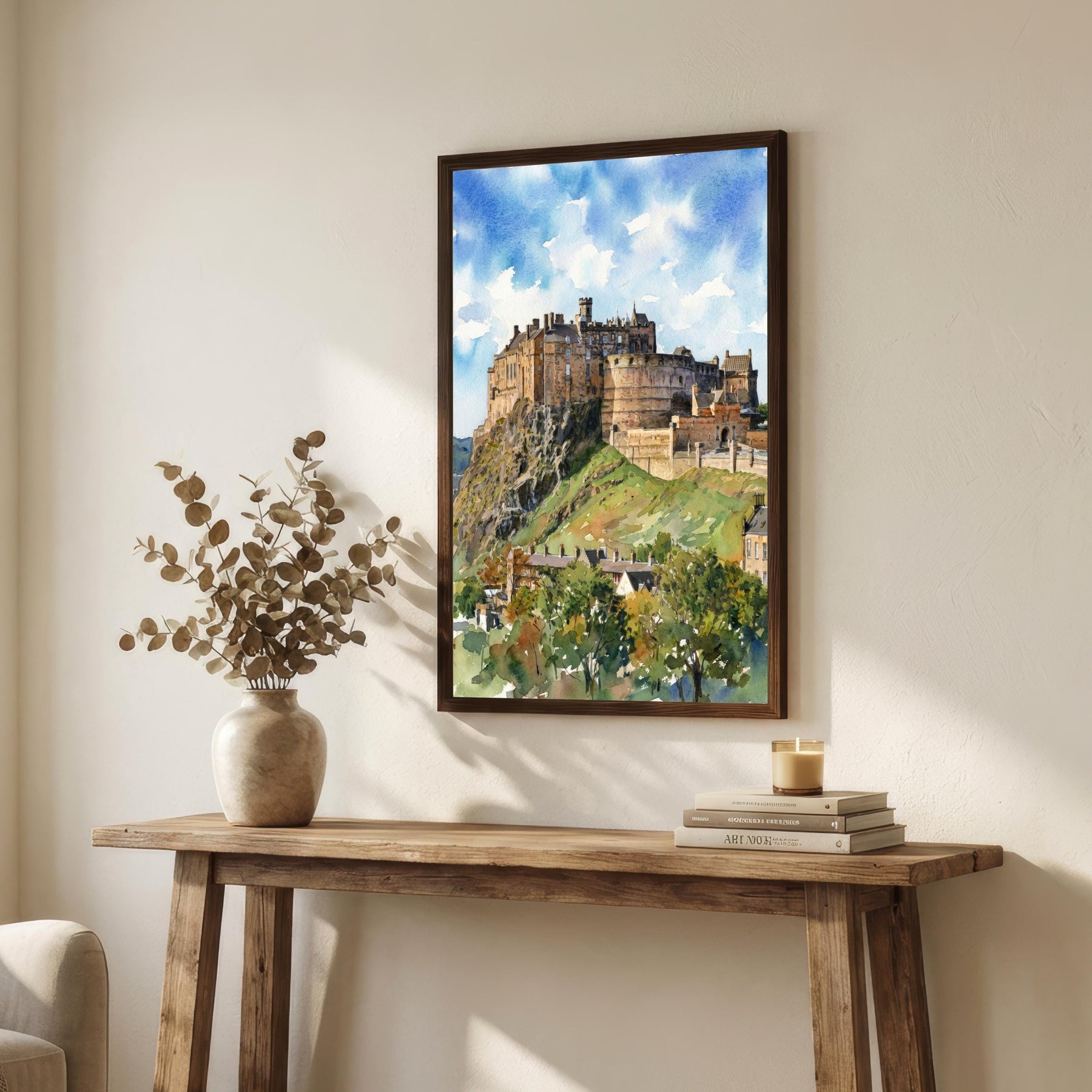 Edinburgh Castle Watercolor Painting Poster Scotland Wall Art Historic City Landmark Landscape Print Gift for UK Travel Lovers and Scenic