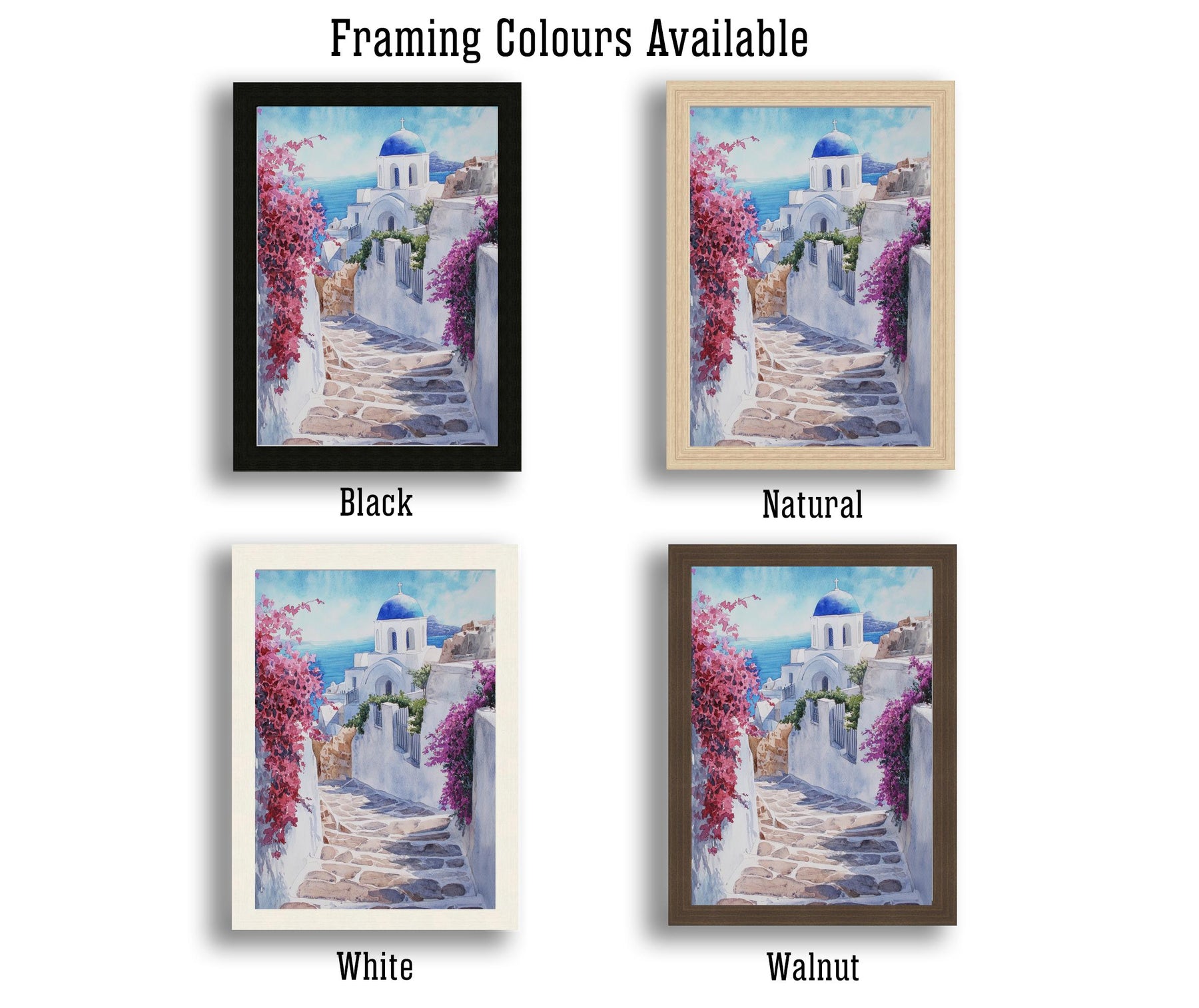 25% OFF all prints, frames & canvases with code 25BLACKLocally Fulfilled in the U.S. Bring the beauty of Santorini into your home with this watercolor art print. It features the iconic whitewashed houses, blue-domed churches and sunlit cliffs overlooking the Aegean Sea. Printed on 220 gsm acid‑free Epson matte archival paper using ultra‑chrome inks, this premium poster is designed to be long‑lasting and fade‑resistant. Perfect as wall decor for travellers, island lovers and anyone inspired by Mediterranean scenery. Multi‑Save Offer Save 30 % when you buy three or more prints with code MULTIBUY30.