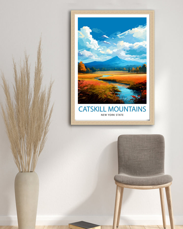 20% OFF all prints, frames & canvases with code 20BACKImmerse yourself in the natural beauty of the Catskill Mountains in New York State with this stunning travel print. Featuring majestic peaks, lush forests, and cascading waterfalls, this artwork captures the serene and captivating essence of the region. Whether you have fond memories of exploring the Catskills or dream of venturing there, this print will bring the tranquillity and wonder of the mountains into your space. Adorn your walls with a piece of nature's splendour and let the Catskills inspire your sense of adventure.