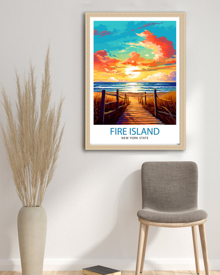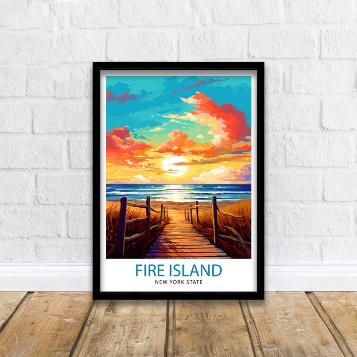 Immerse yourself in the beauty of Fire Island, New York State, with this captivating travel print. Known for its stunning beaches, scenic dunes, and relaxed atmosphere, Fire Island offers a serene escape from the hustle and bustle of everyday life. Whether you've experienced the charm of Fire Island firsthand or dream of visiting its shores, this art print will transport you to the idyllic landscapes and coastal vibes that define this enchanting destination. Bring a piece of Fire Island's coastal magic into your home with this captivating artwork.