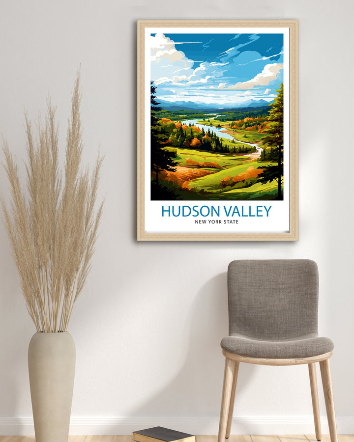 Immerse yourself in the scenic beauty of Hudson Valley, New York State with this captivating travel print. Featuring the picturesque landscapes, charming towns, and historic sites of the region, this artwork captures the essence of Hudson Valley's unique charm. Whether you've explored the rolling hills, visited the vineyards, or wandered through the quaint villages, this print will evoke fond memories or inspire you to plan your next adventure. Bring a piece of Hudson Valley's natural beauty into your home with this stunning art print.