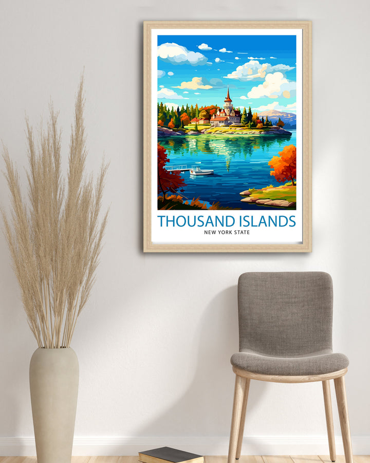 20% OFF all prints, frames & canvases with code 20BACKExperience the enchanting beauty of the Thousand Islands in New York State with this captivating travel print. Showcasing the picturesque islands scattered along the St. Lawrence River, this artwork captures the serene and idyllic atmosphere of this stunning destination. Whether you've explored the Thousand Islands before or dream of embarking on an adventure here, this print will transport you to the tranquility and natural wonders of this remarkable region. Bring a touch of New York's scenic charm into your home with this captivating art print.