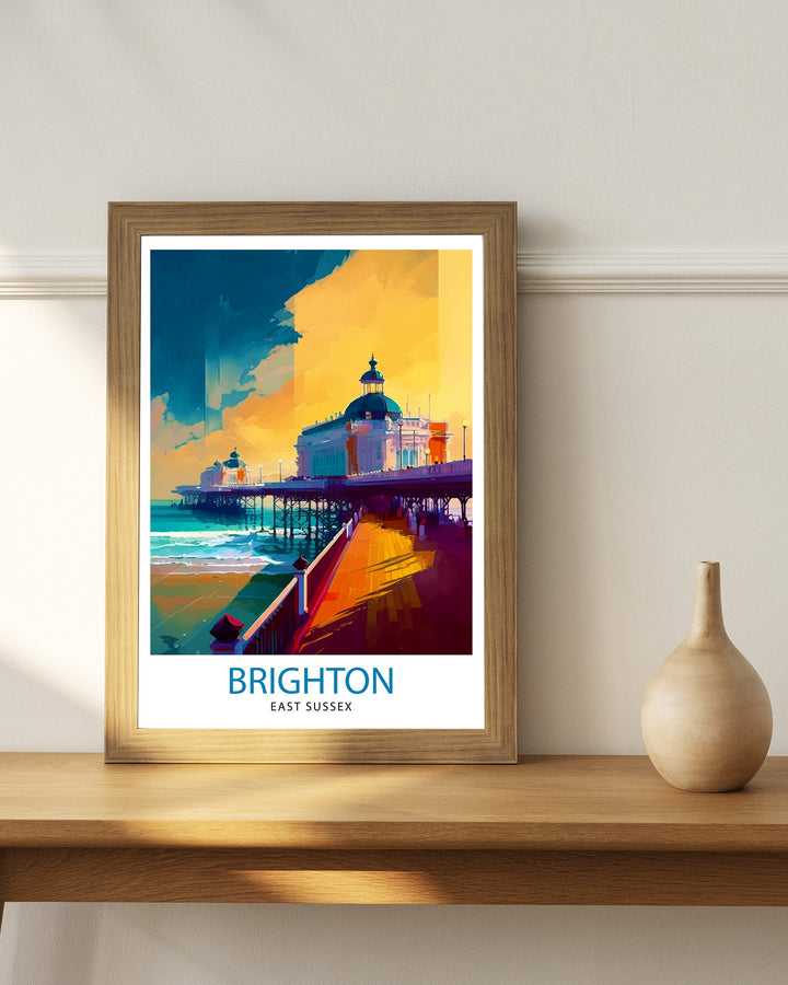 20% OFF all prints, frames & canvases with code 20BACKBring the vibrant and coastal charm of Brighton in East Sussex into your home with this captivating travel print. Featuring iconic landmarks, stunning seascapes, and the lively atmosphere of Brighton, this print is a perfect way to showcase your love for this beautiful seaside town.