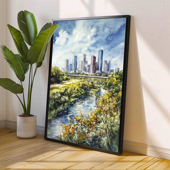 Houston Watercolor Painting Texas City Art Houston Skyline Poster Urban Watercolor Landscape Houston Wall Art Scenic Houston Decor