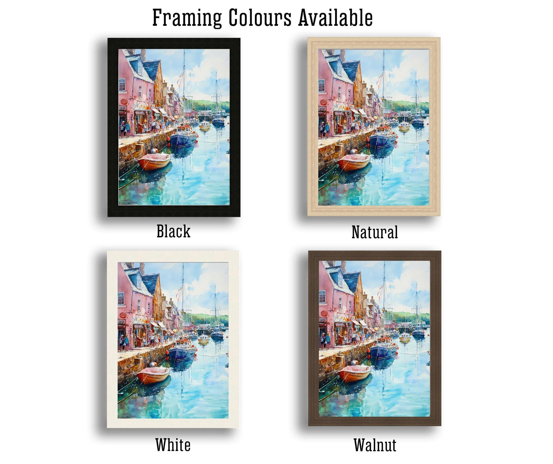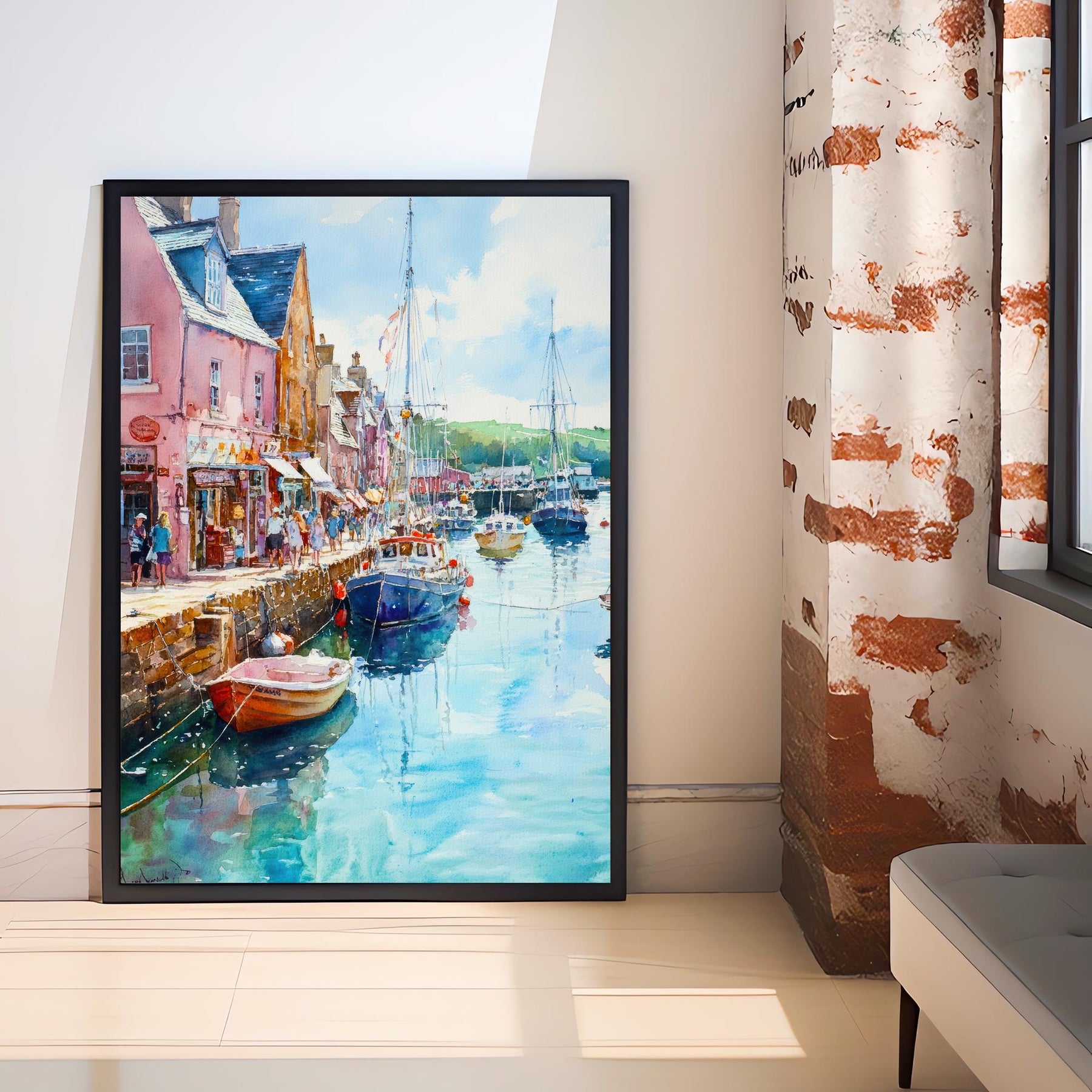 Padstow Harbour Watercolour Painting Cornwall Coastal Wall Art Poster Colourful Fishing Boats Seaside Village UK Travel Poster Kitchen Decor