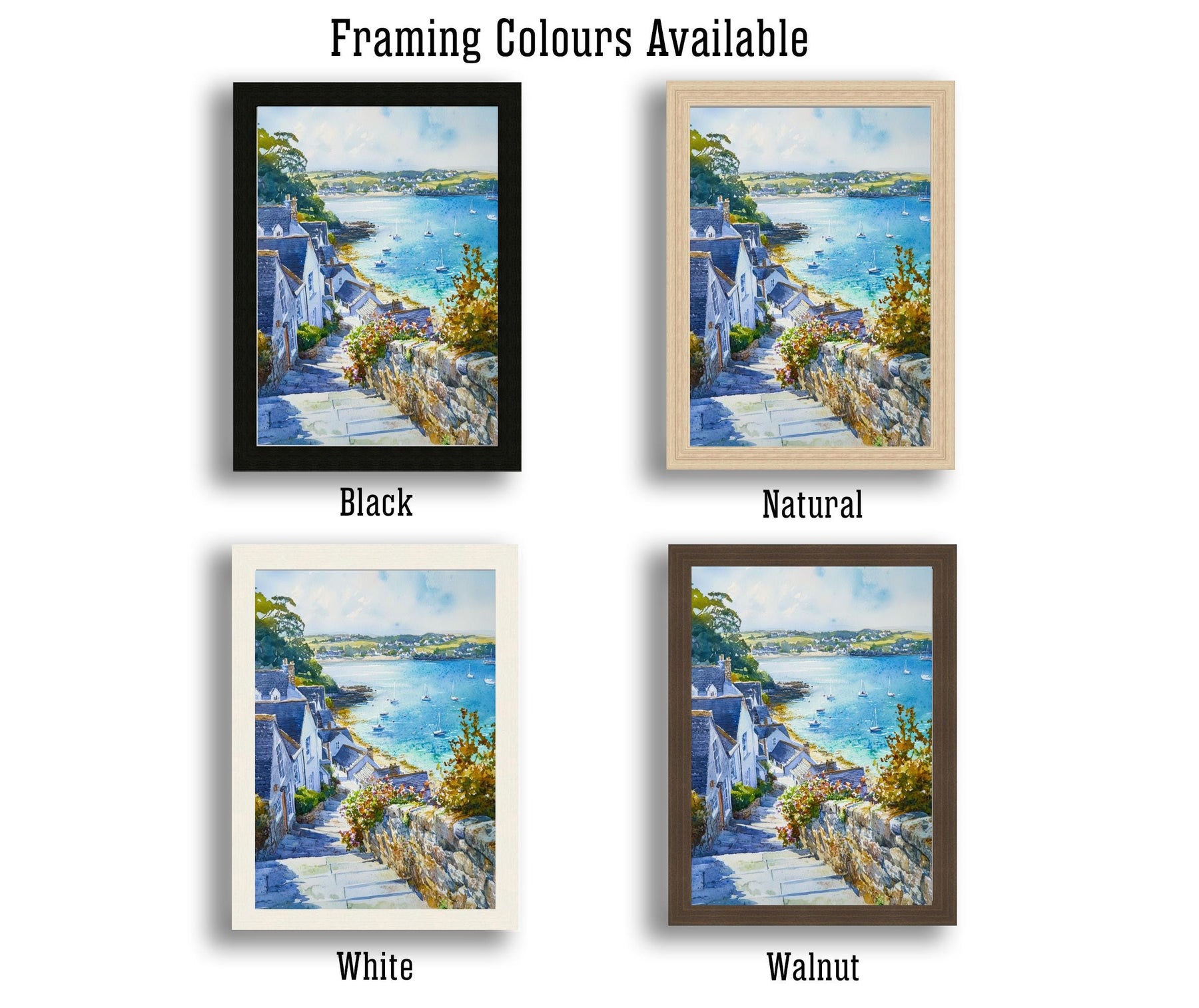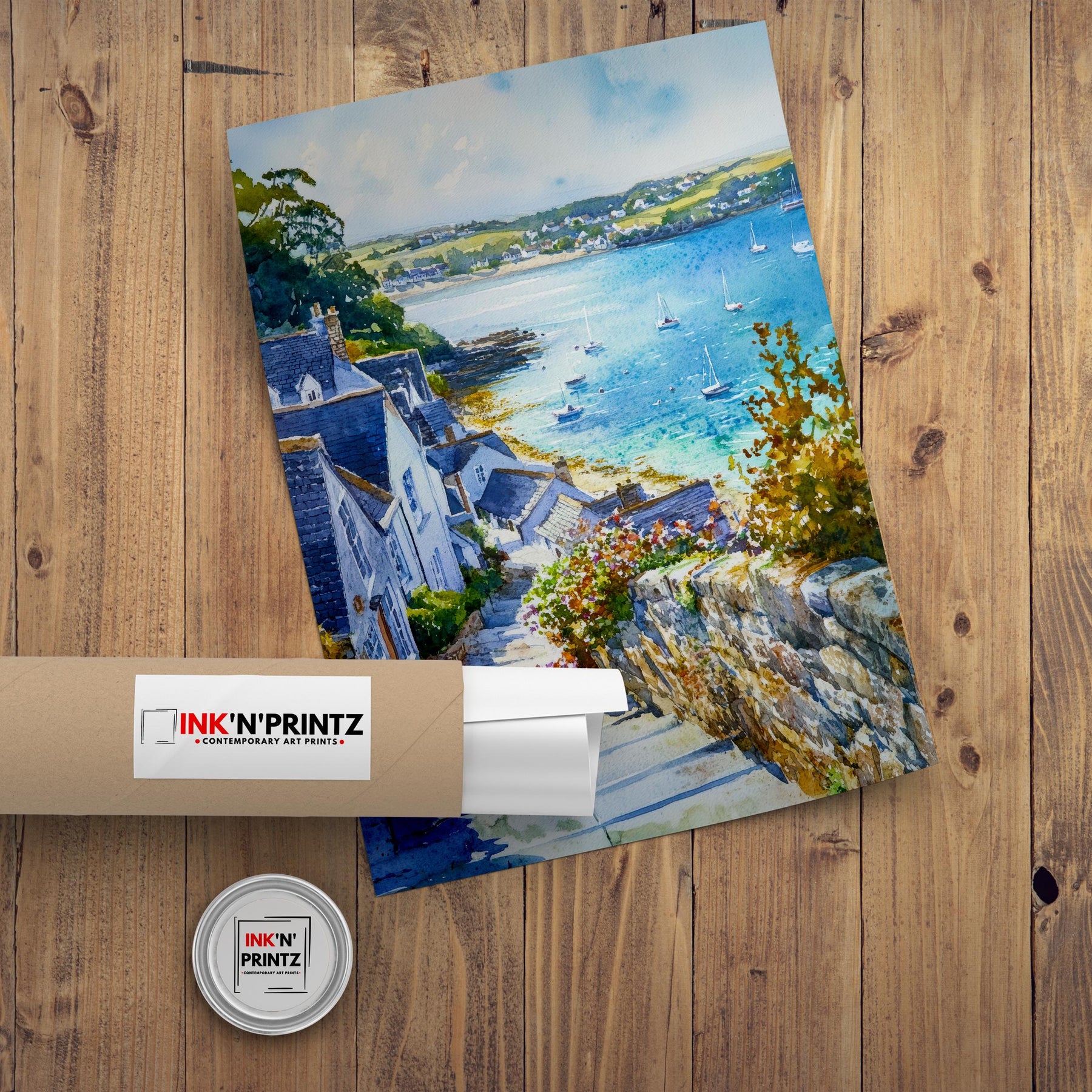 Bring the idyllic tranquility of the South Cornish coast into your home with this beautiful St Mawes Watercolour Poster print. The artwork features the iconic fishing village and sheltered harbour on the Roseland Peninsula, known for its charming, brightly coloured cottages clustered around the water's edge. This vibrant piece captures the essence of coastal life, often featuring the historic St Mawes Castle and sailing boats on the Fal River. The soft, washes of the watercolour medium perfectly evoke the sunny, peaceful atmosphere of this Cornish gem. It’s an ideal piece of seaside wall art or a perfect memento of a tranquil holiday on the Fal Estuary.