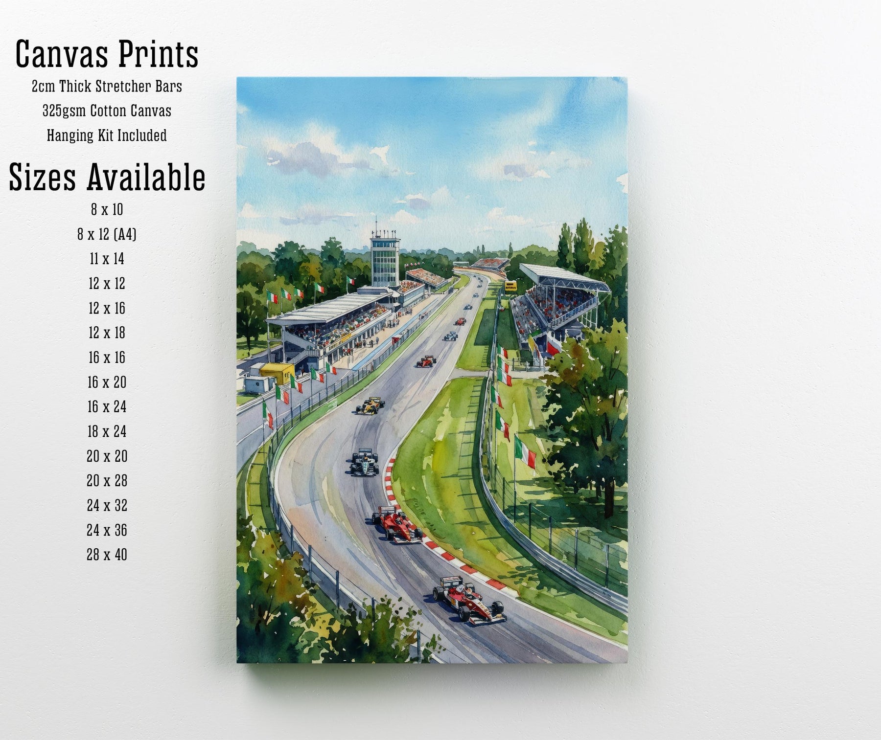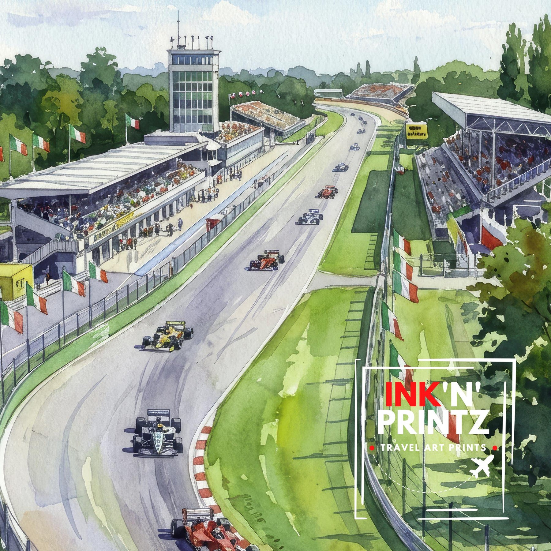 Monza Racing Car Circuit Watercolor Painting Poster Italy Wall Art Motorsport Landscape Print Gift for Racing Fans and Lovers of Scenic