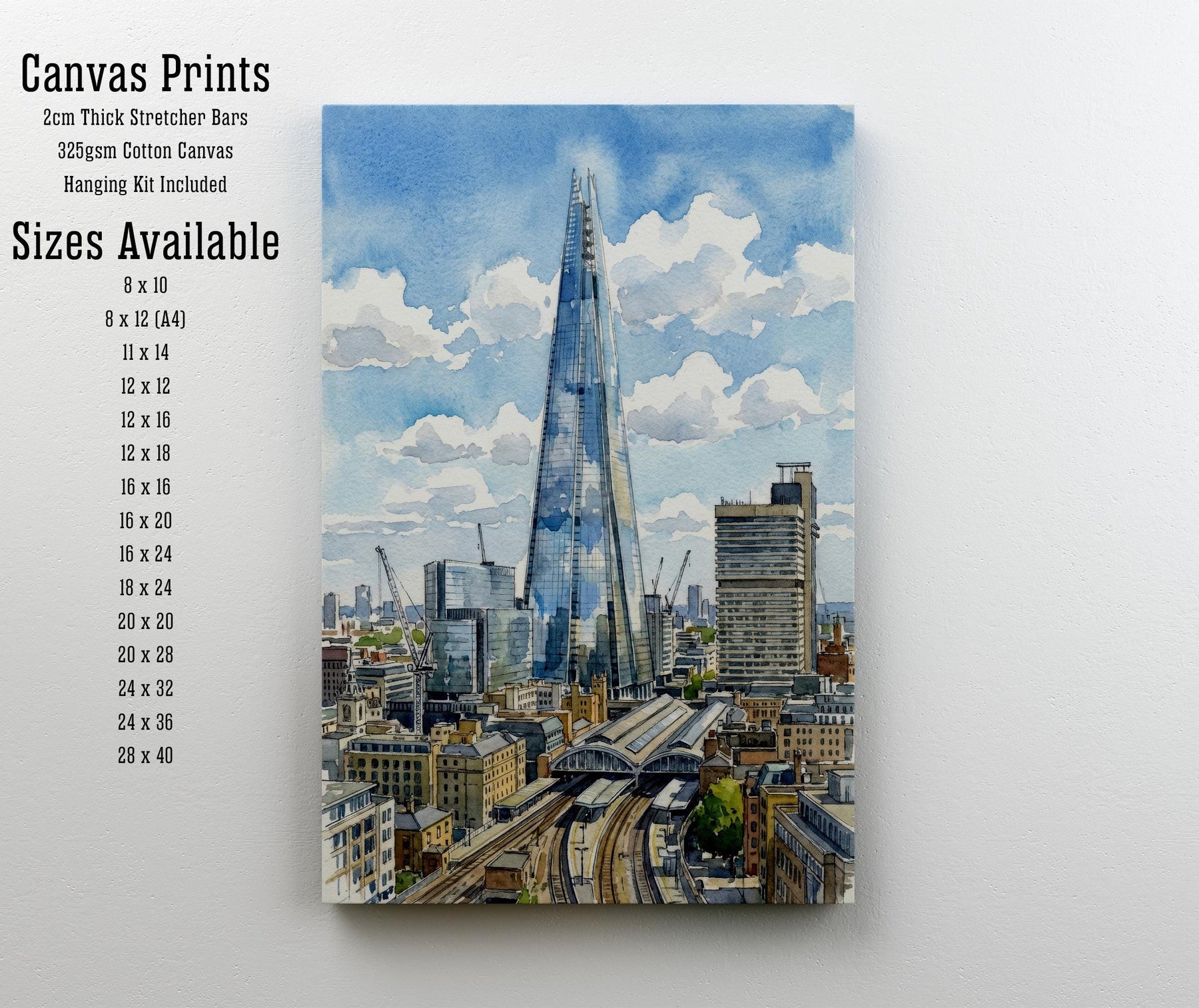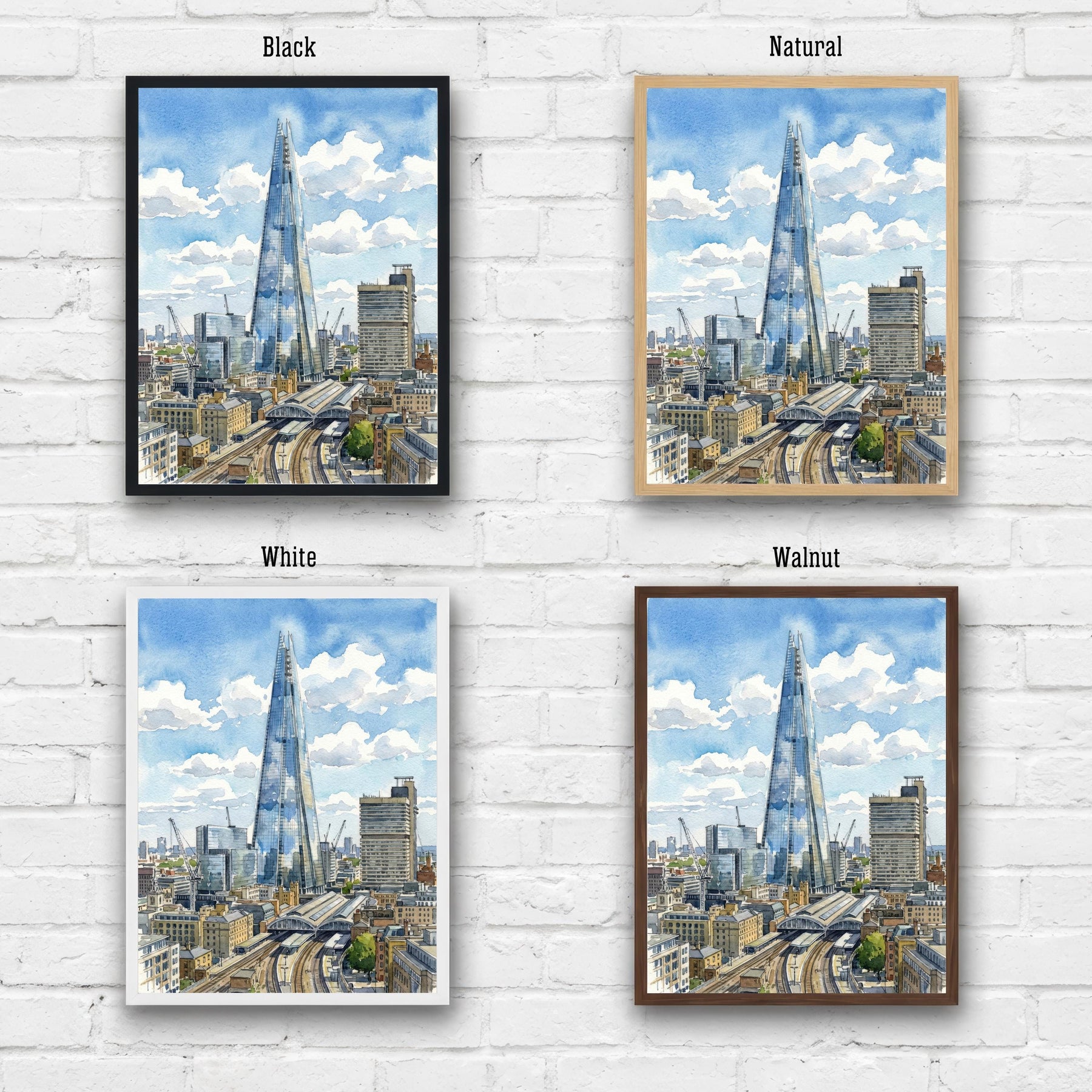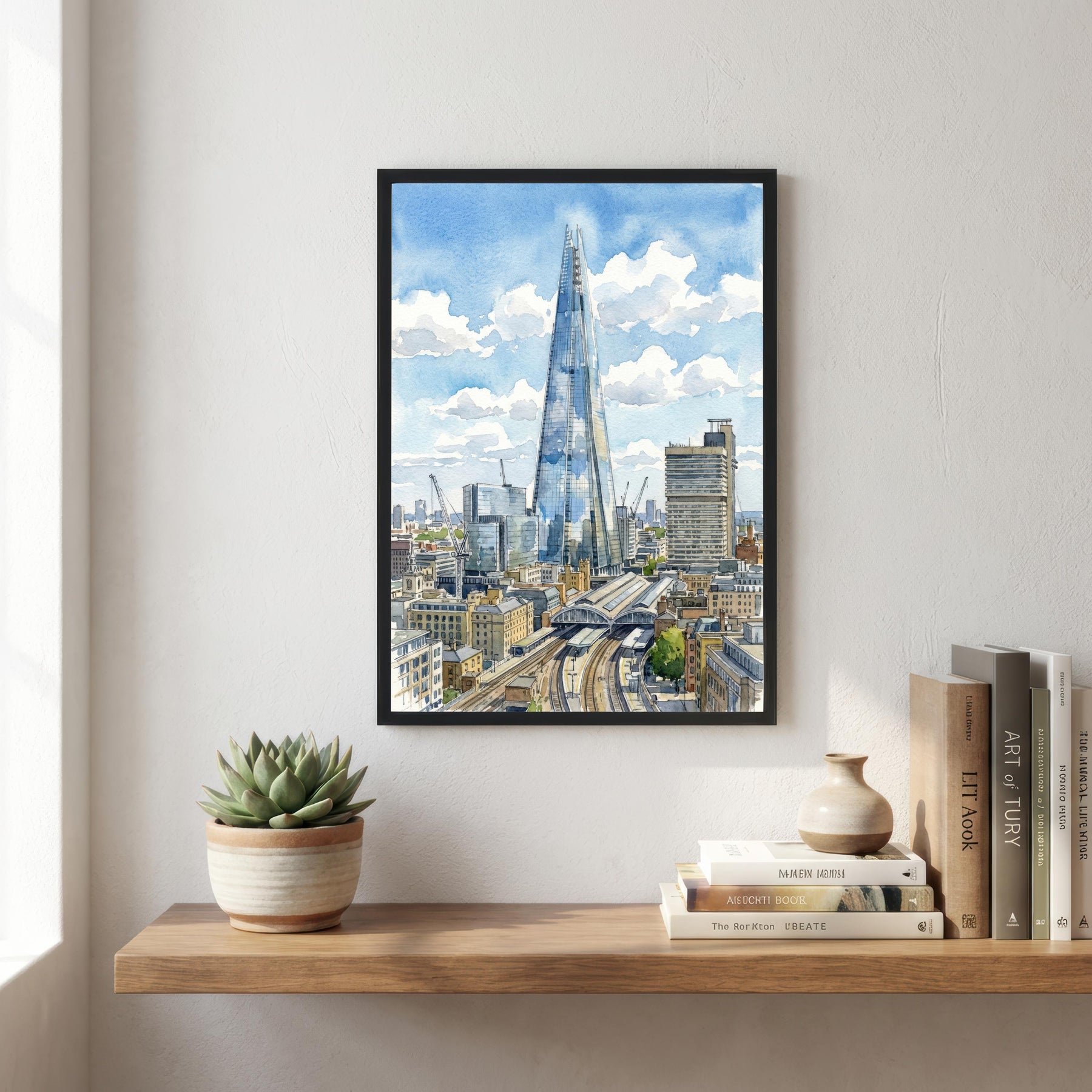 The Shard Watercolor Painting Poster London England Wall Art City Skyline Print Gift for UK Travel Lovers and Fans of Scenic Modern British