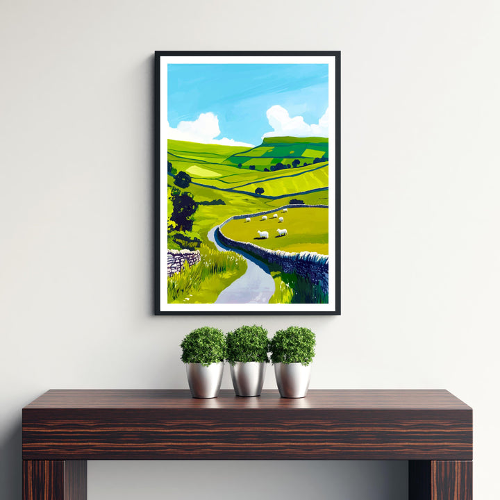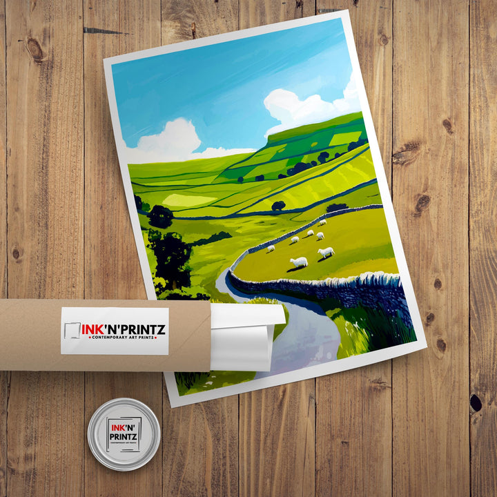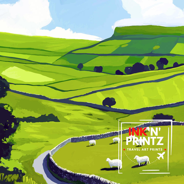 Explore the breathtaking beauty of the Yorkshire Dales with this captivating travel print. Featuring the iconic rolling hills, picturesque valleys, and charming stone cottages, this artwork captures the essence of this stunning national park. Highlights include the dramatic limestone scenery, vibrant wildflower meadows, and serene rivers that define this enchanting region. Perfect for nature lovers, hiking enthusiasts, or anyone who cherishes the unique charm of the English countryside, this print brings the tranquil spirit of the Yorkshire Dales into your home.