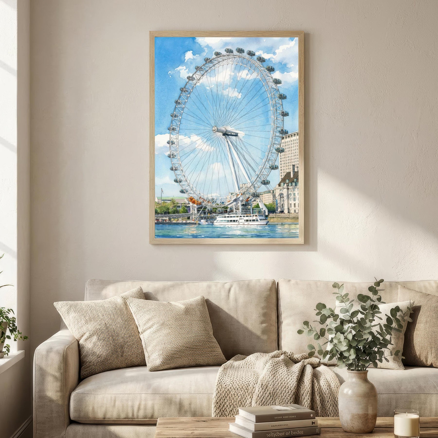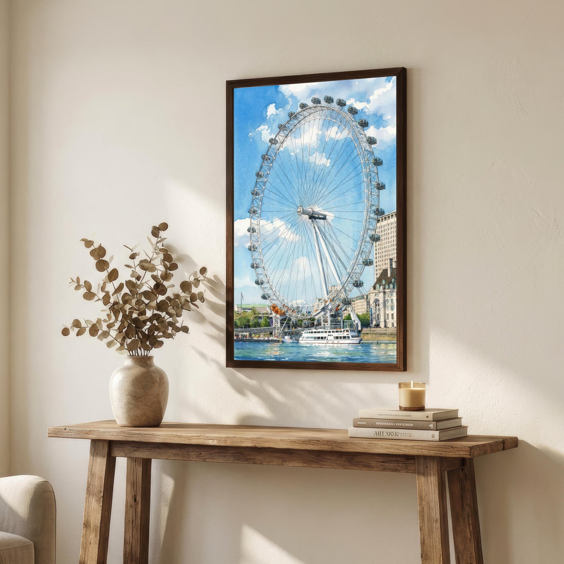 London Eye Watercolour Painting Poster England Wall Art City Landmark Landscape Gift for UK Travel Lovers and Fans of Scenic British