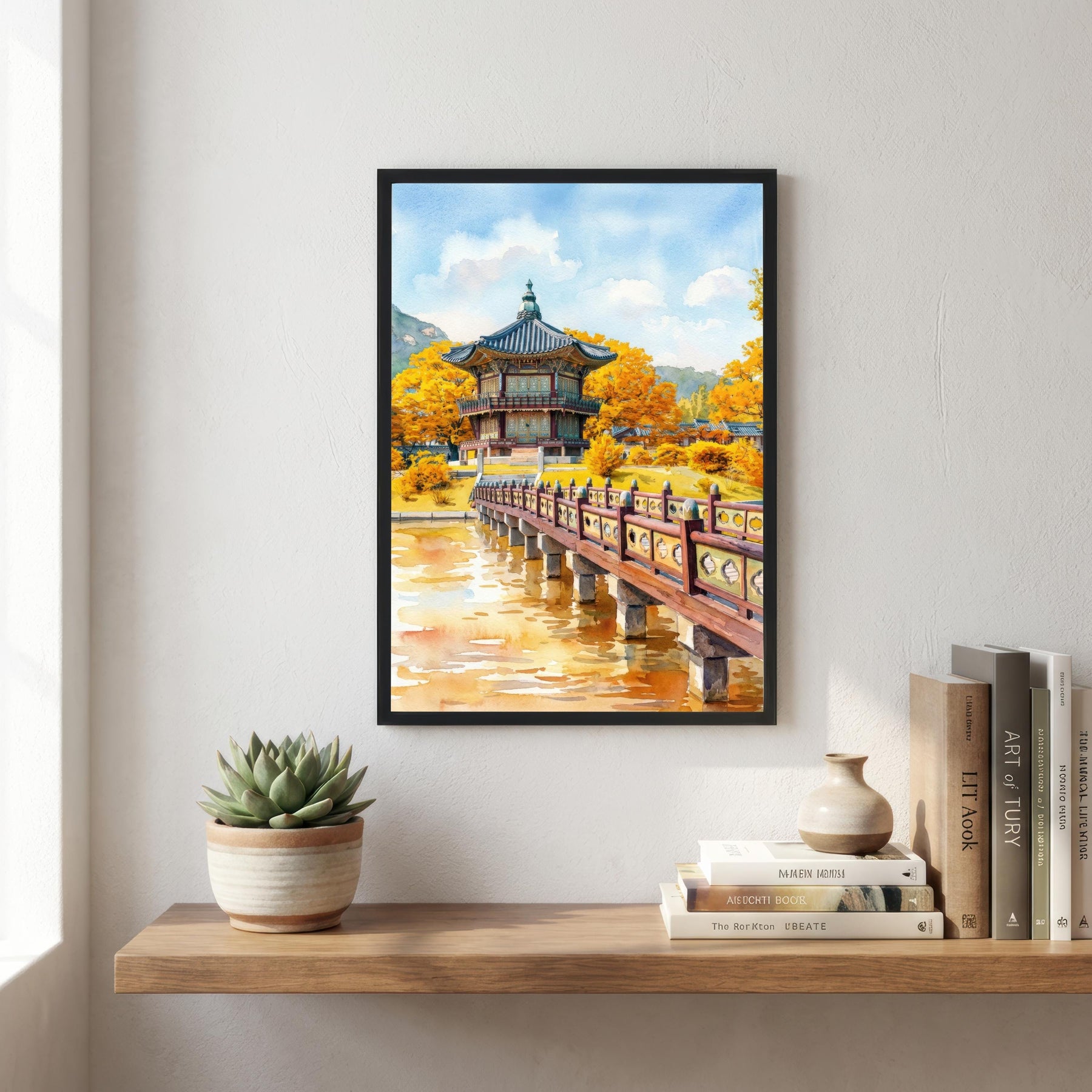 Seoul Watercolor Painting Poster South Korea Wall Art City Skyline Landscape Print Gift for Asia Travel Lovers and Fans of Scenic Modern