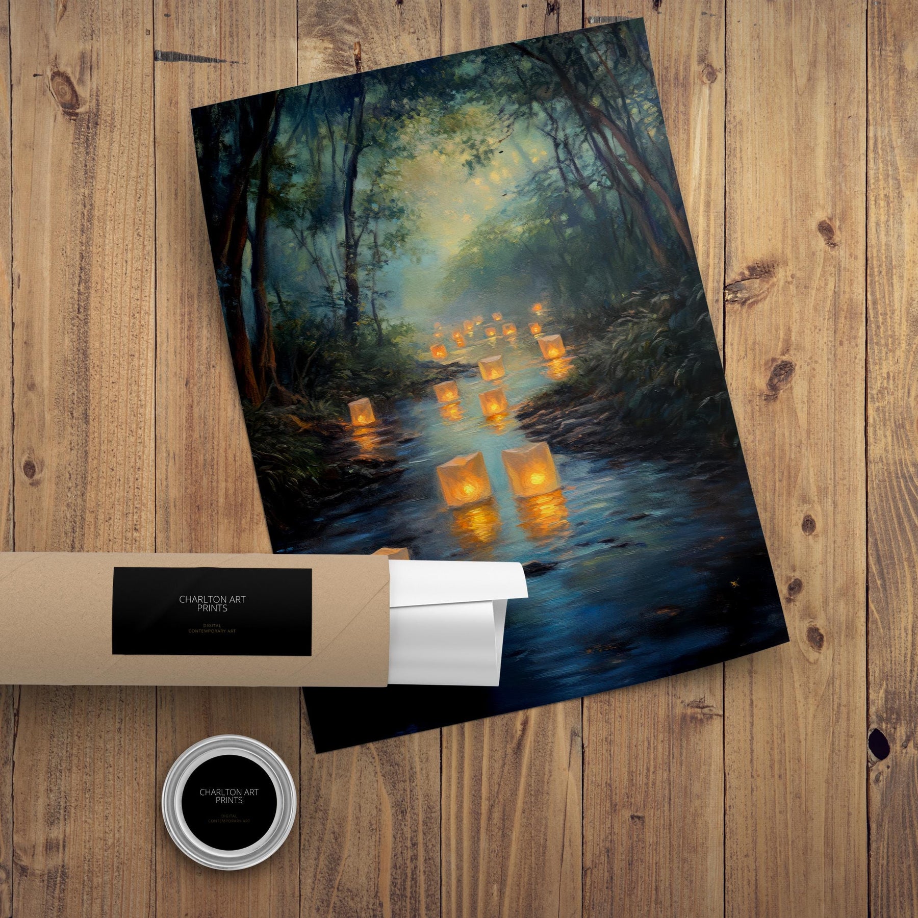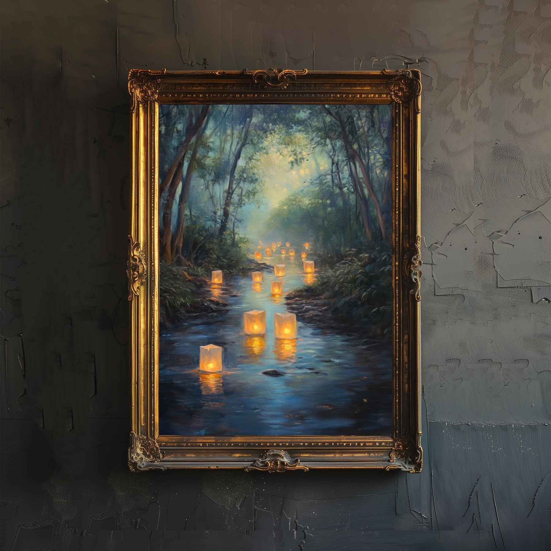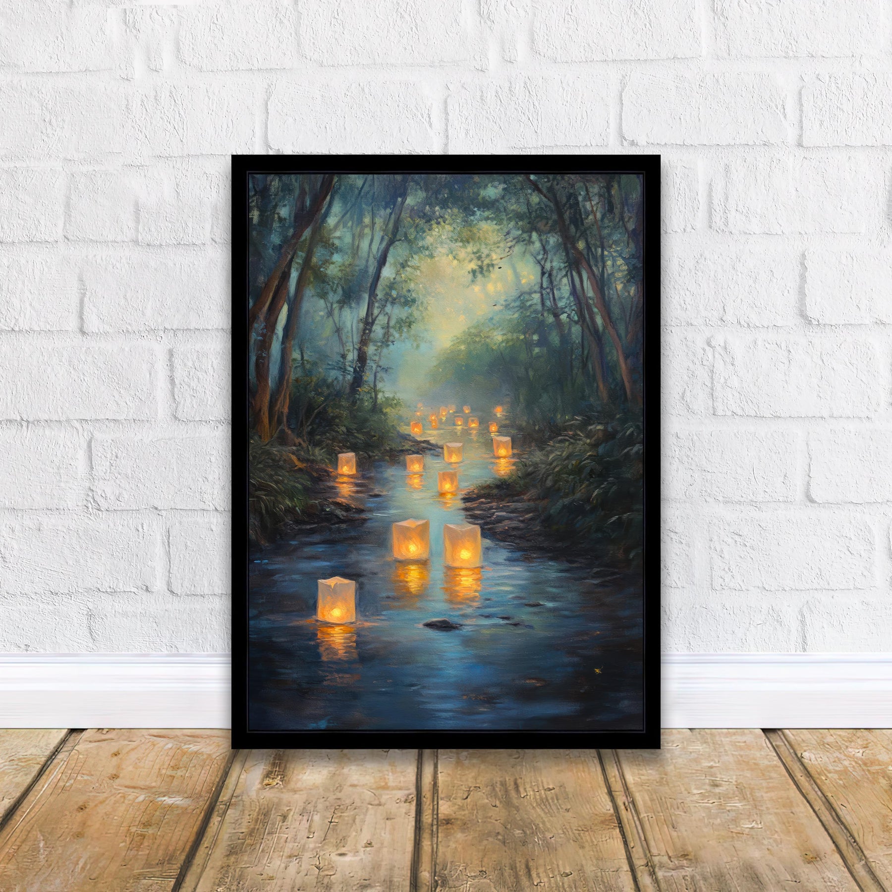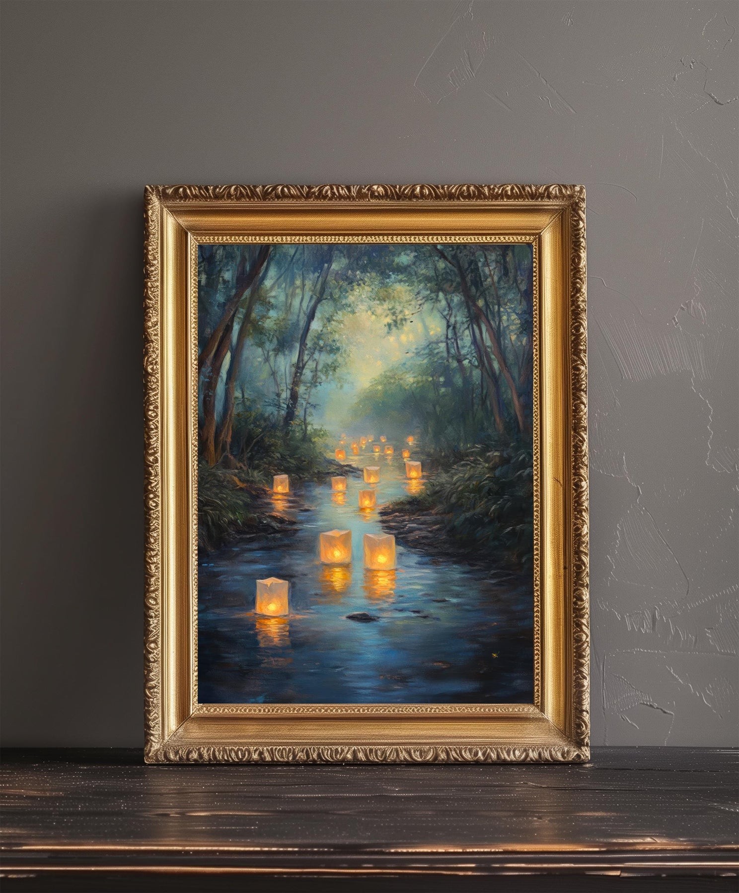 Fairy Lanterns Floating Poster Cottagecore Decor Dark Academia Art Enchanted Illustration Vintage Nature Wall Art Rustic Aesthetic