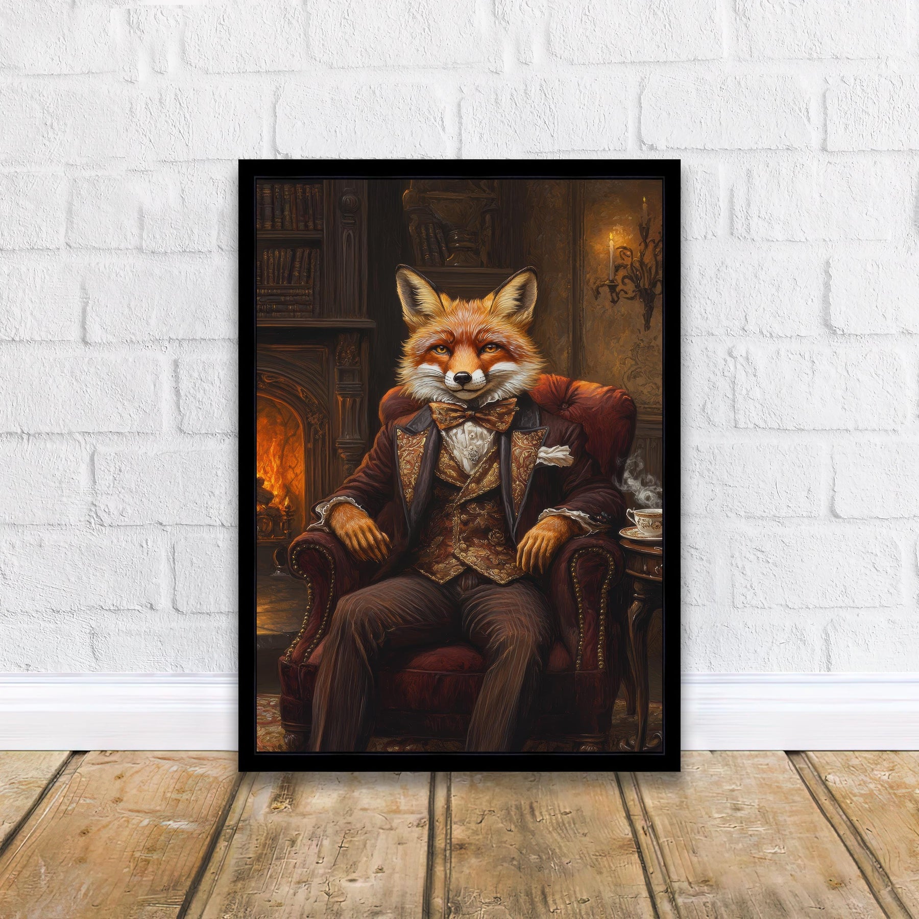 Step into a scene of charming tranquility with this art print featuring a wise fox nestled comfortably in a grand Victorian armchair. This piece beautifully blends the rustic elegance of cottagecore with a touch of whimsical sophistication. The intricate details of the armchair, the fox's serene expression, and the cozy atmosphere evoke a sense of peaceful contemplation and old-world charm. It's an ideal addition for animal lovers, cottagecore enthusiasts, or anyone seeking to add a unique blend of warmth, character, and refined whimsy to their home decor.