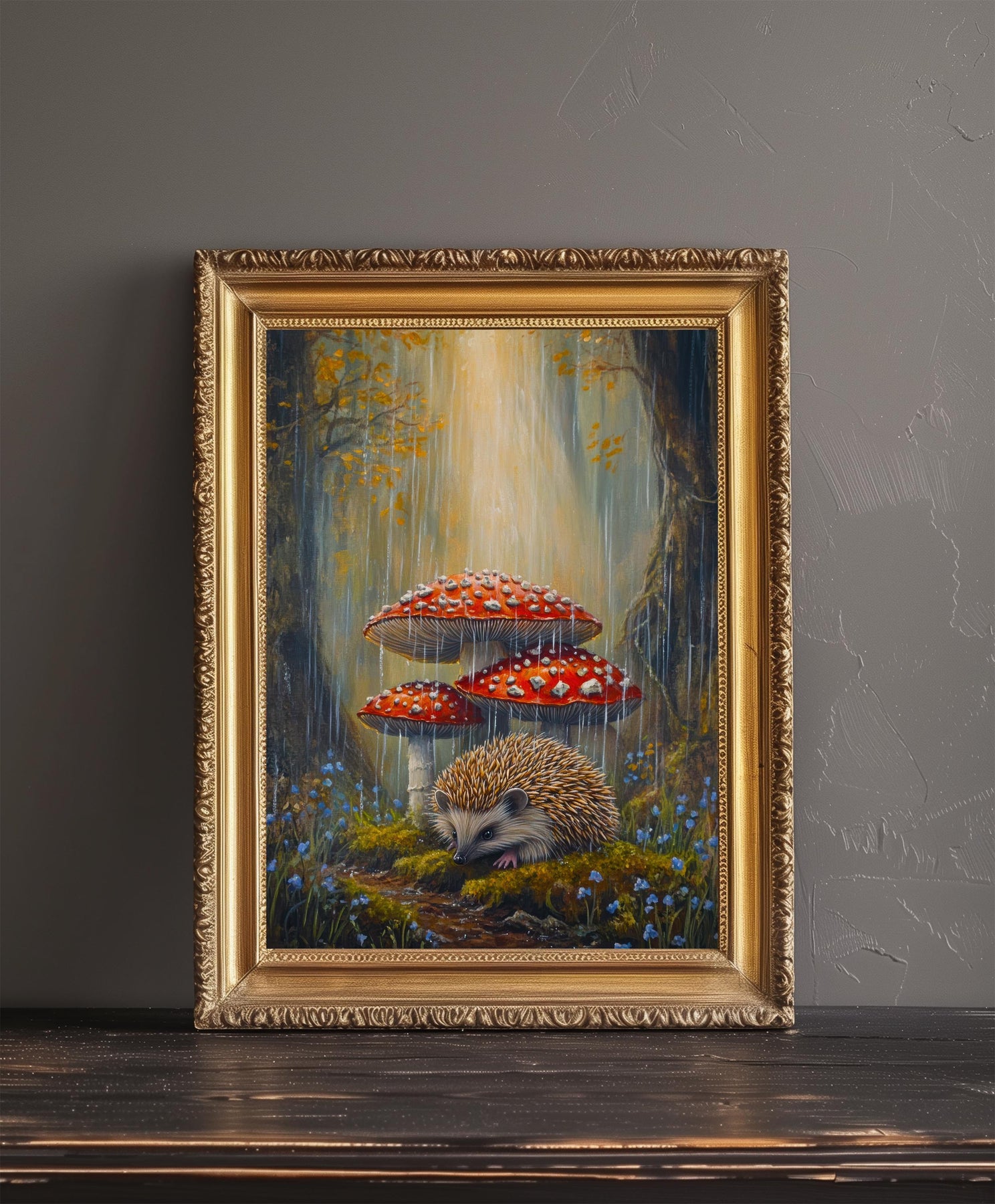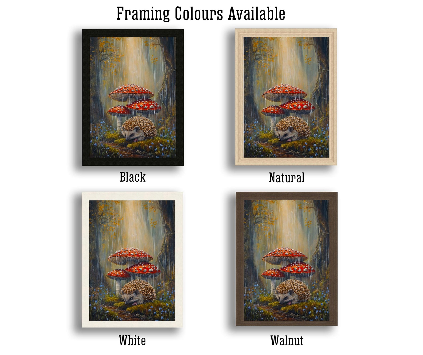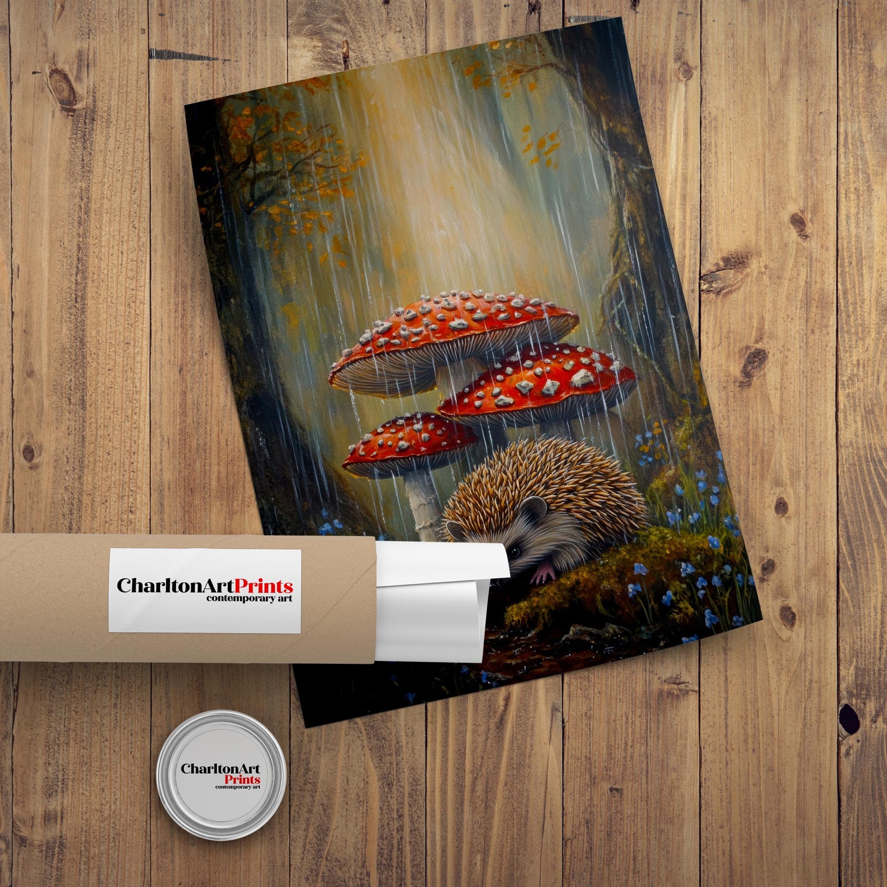 Step into a charming miniature world with our Hedgehog Under Toadstools Cottagecore Print. This delightful artwork features an adorable hedgehog nestled beneath a cluster of vibrant toadstools, surrounded by soft moss and forest floor details. The scene perfectly captures the whimsical and cozy spirit of cottagecore, evoking a sense of peaceful enchantment and the hidden magic of the woodland.