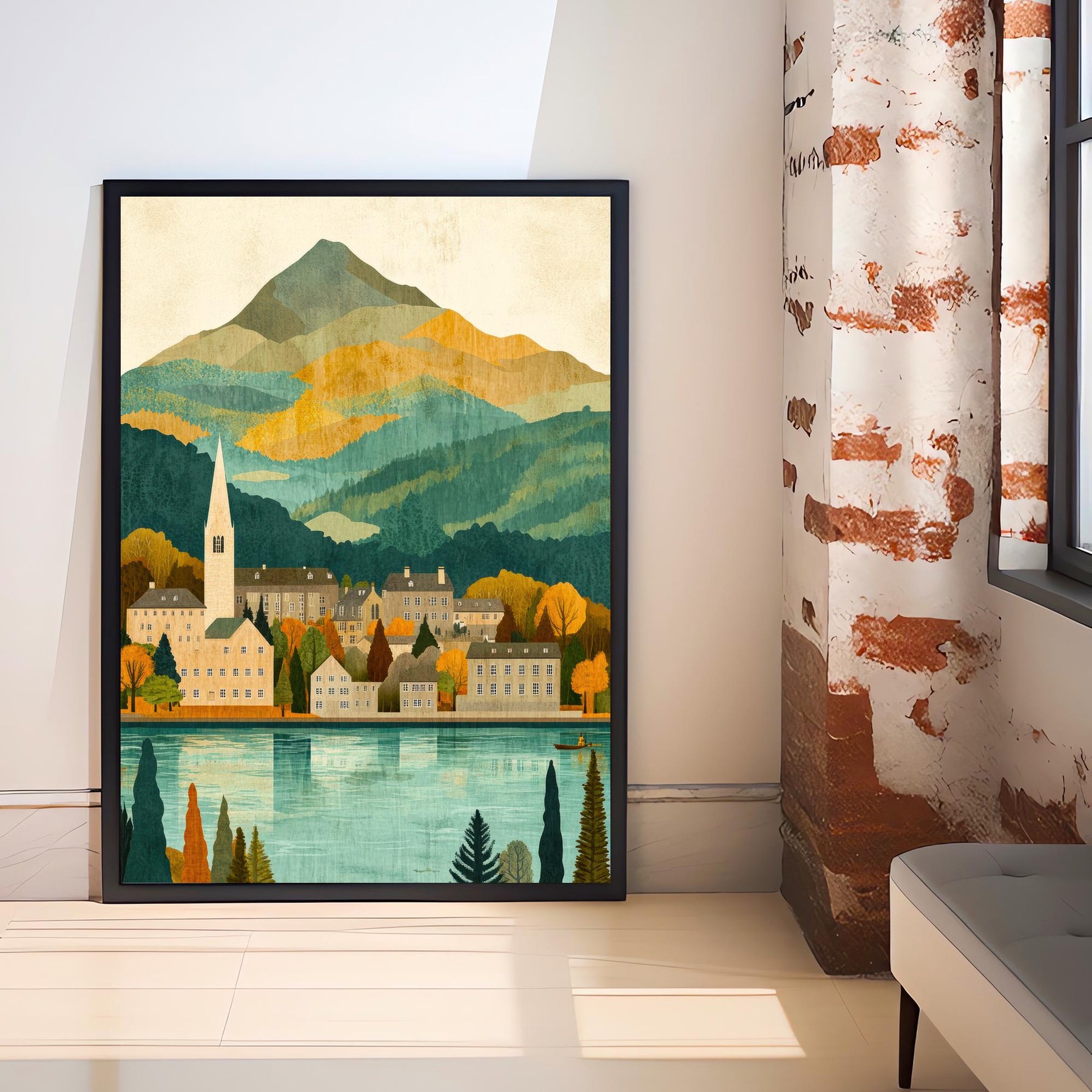 Celebrate the beauty of Cumbria with this Keswick Lake District minimalist travel poster. Featuring soft pastel tones and layered modern design, this artwork highlights the peaceful charm of Keswick, surrounded by fells and Derwentwater. Perfect for walkers, nature lovers, and admirers of contemporary countryside decor, it makes a thoughtful gift or stylish wall addition.