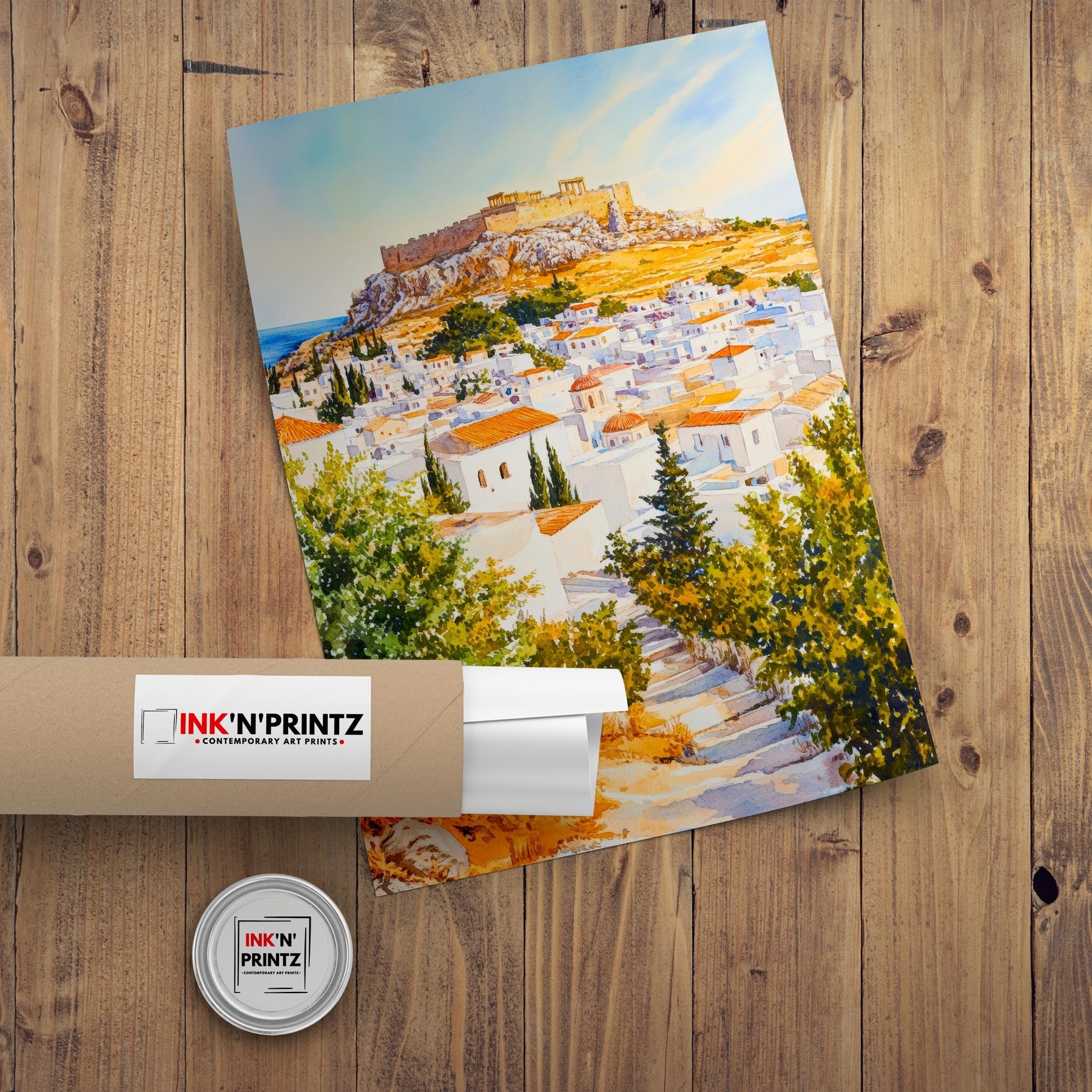 Lindos Rhodes Travel Poster Poster Greece Wall Art Greek Island Decor Scenic Coastal Landscape Gift