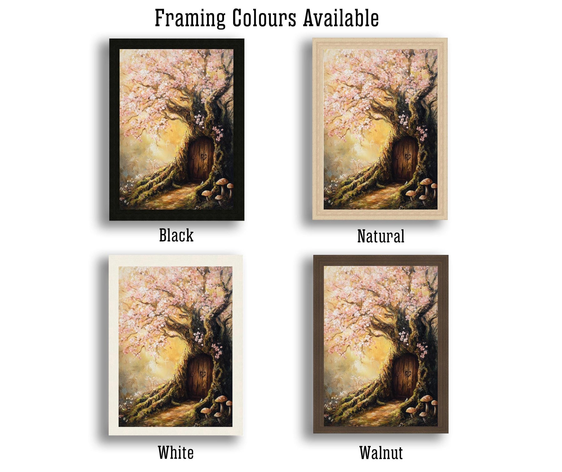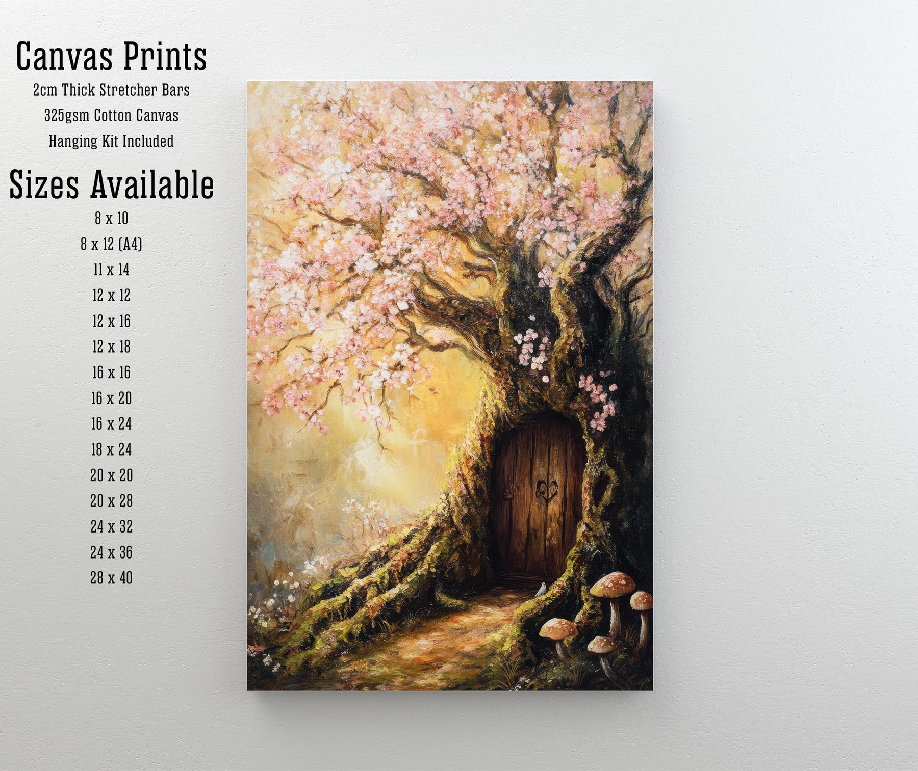 Magical Fairy Door in a Flowering Tree Print Cottagecore Decor Enchanted Fantasy Illustration Whimsical Wall Art