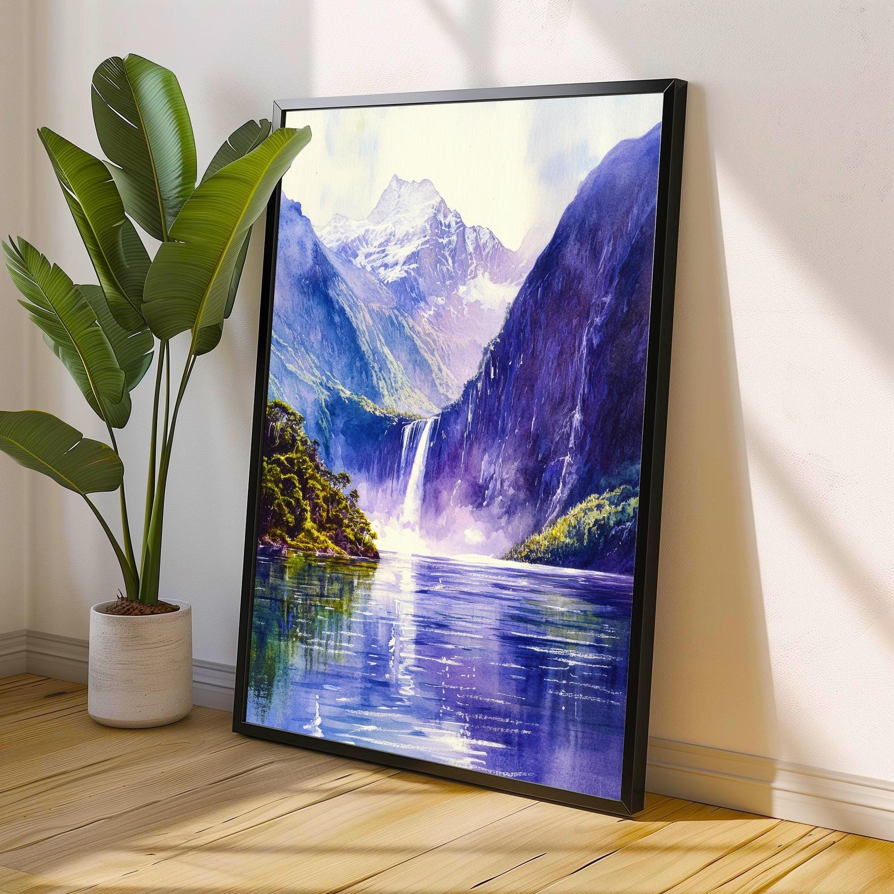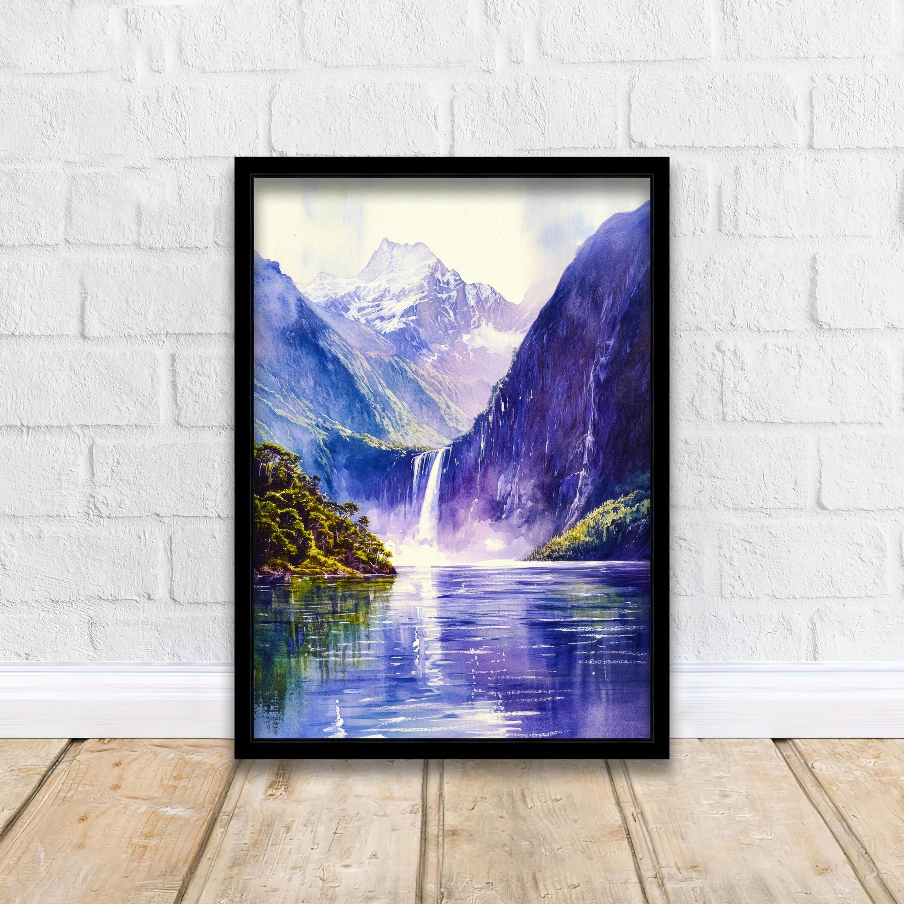 Milford Sound New Zealand Travel Poster Poster Wall Art Fiordland Landscape Gift for Oceania Lovers and Fans of Scenic Coastal Mountain