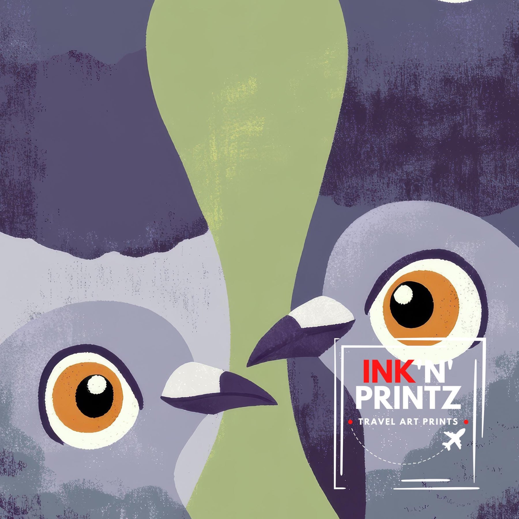 Pigeons Art Print Retro Midcentury Pop Style Wall Poster for Kitchen Dining Room or Eclectic Urban Home Decor