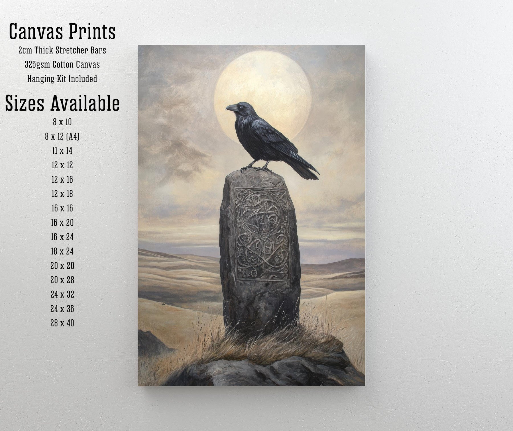 Raven on Celtic Standing Stone Print Mythical Decor Gothic Wall Art Dark Academia Art Folkloric Illustration