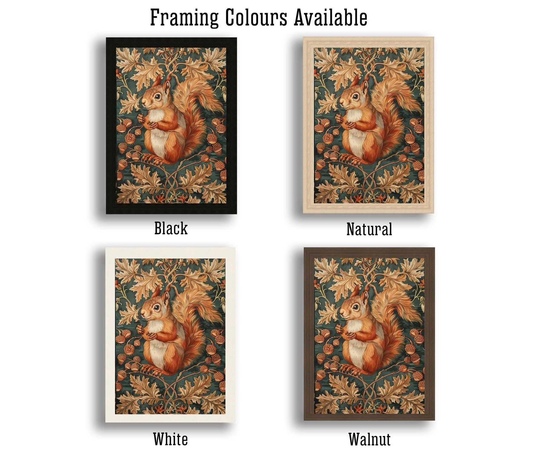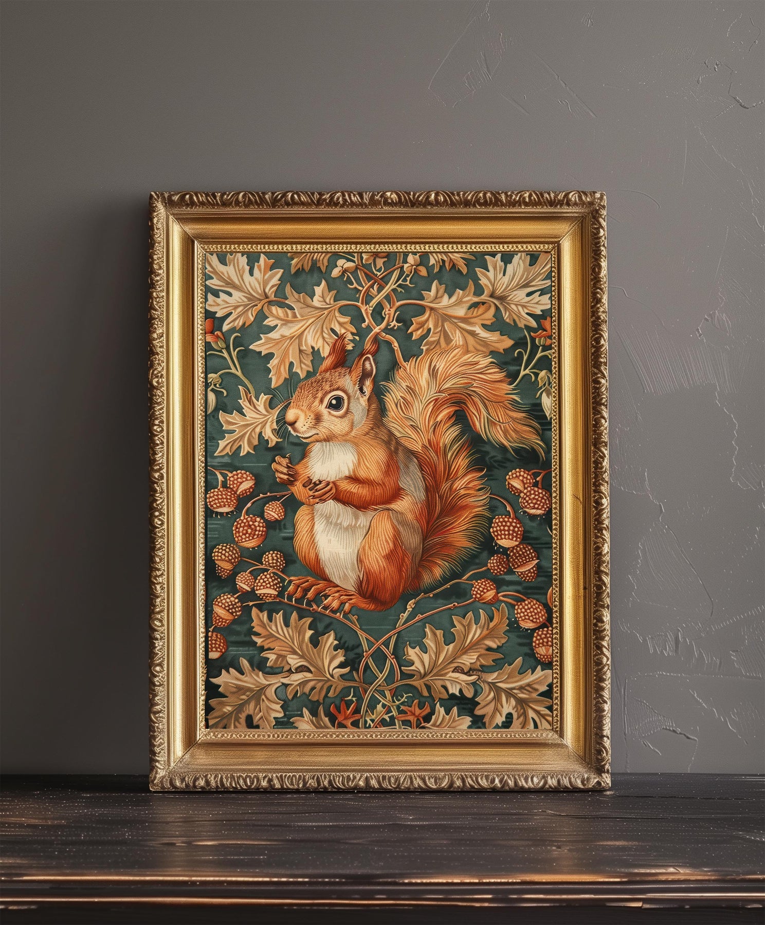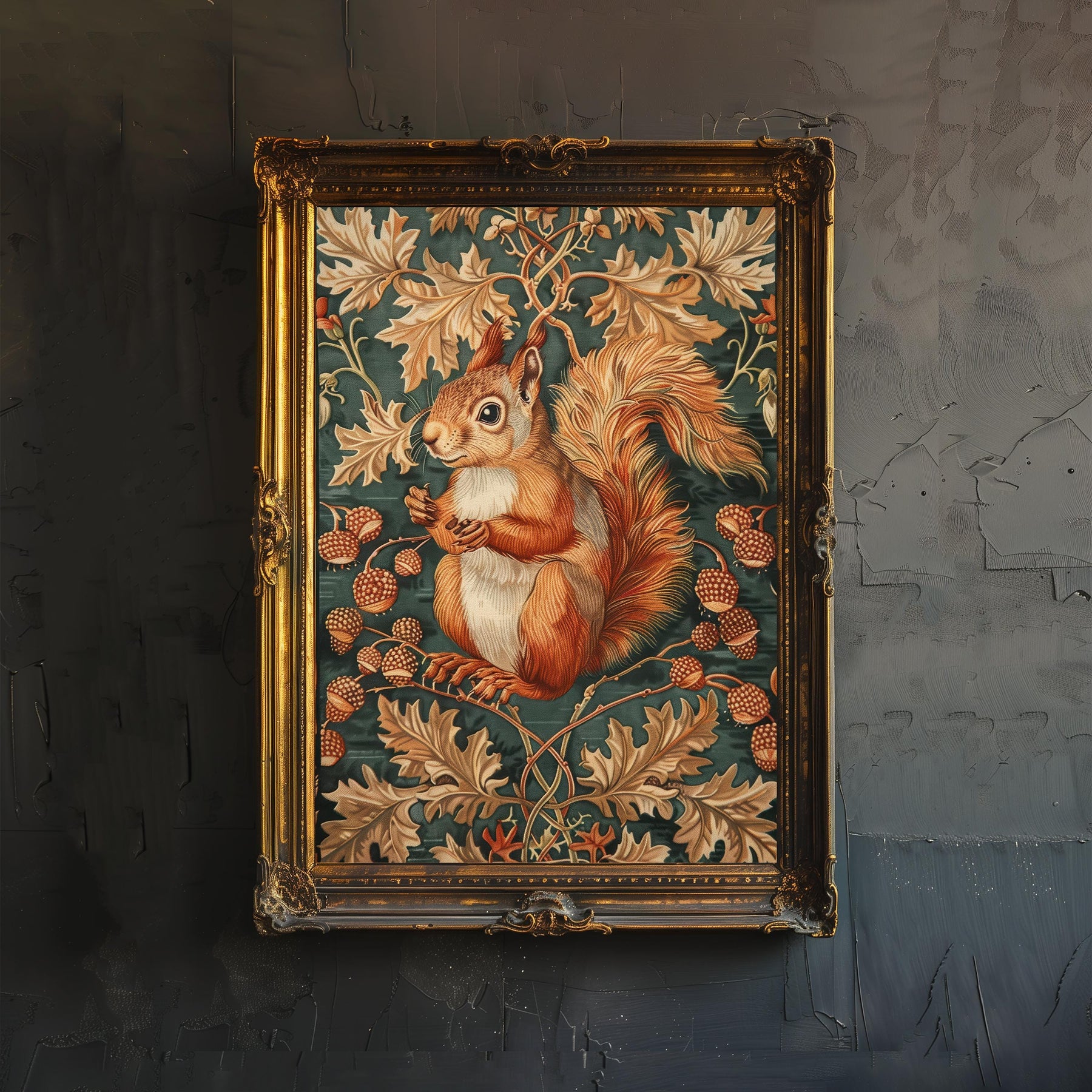 Red Squirrel in a Floral Pattern Poster William Morris Style Cottagecore Art Vintage Nature Illustration Rustic Decor