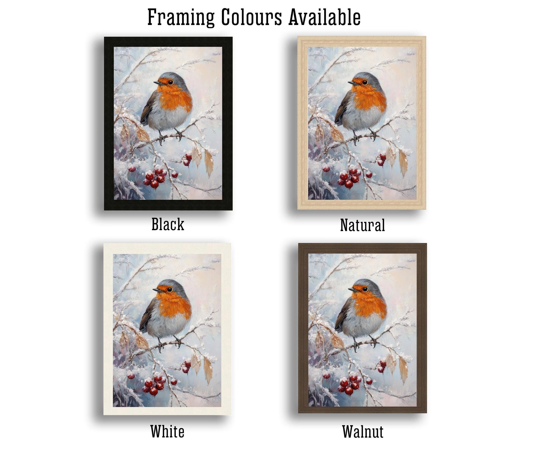 Robin in Frosted Brambles Art Print Cottagecore Winter Nature Decor Woodland Bird Wall Art