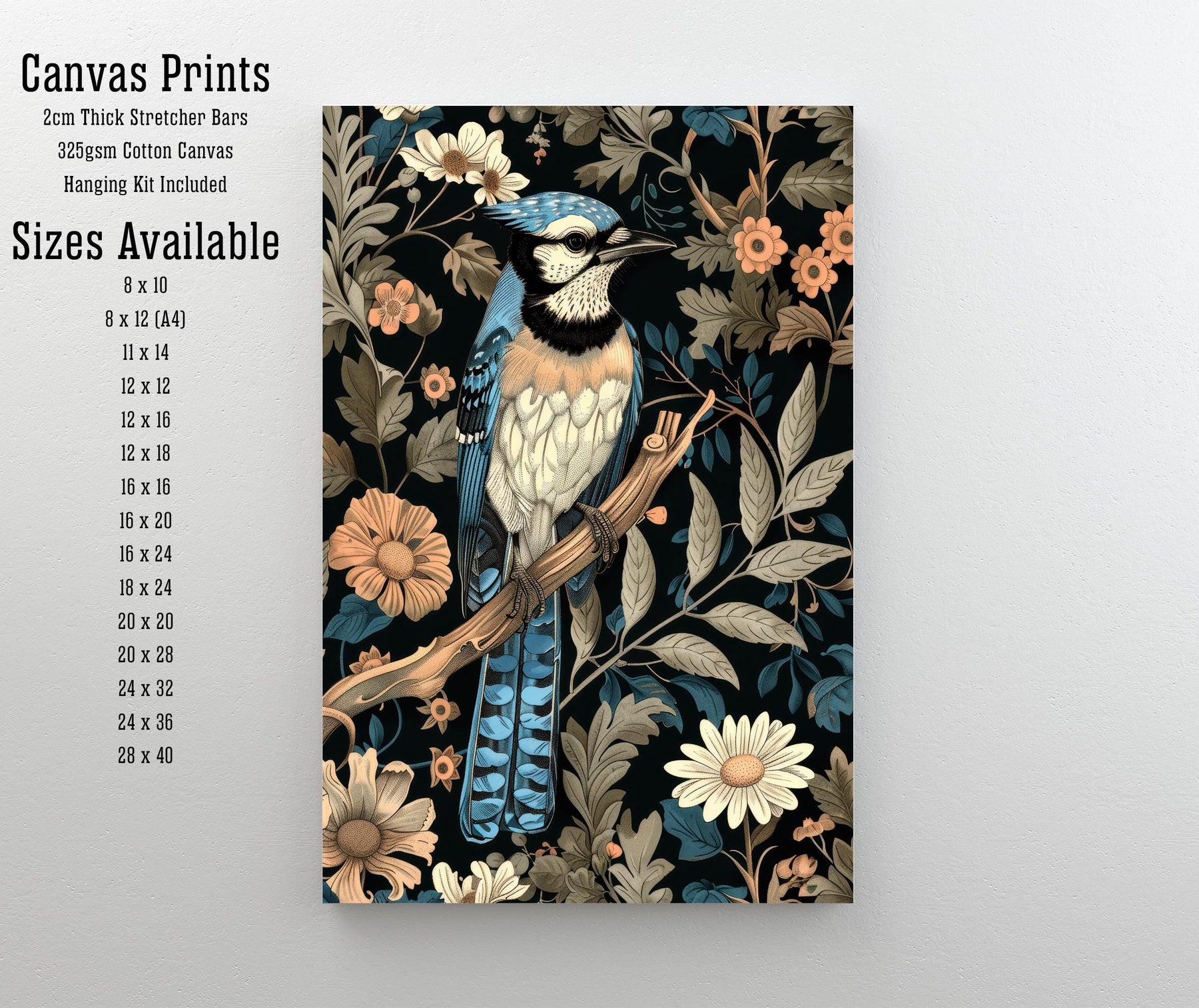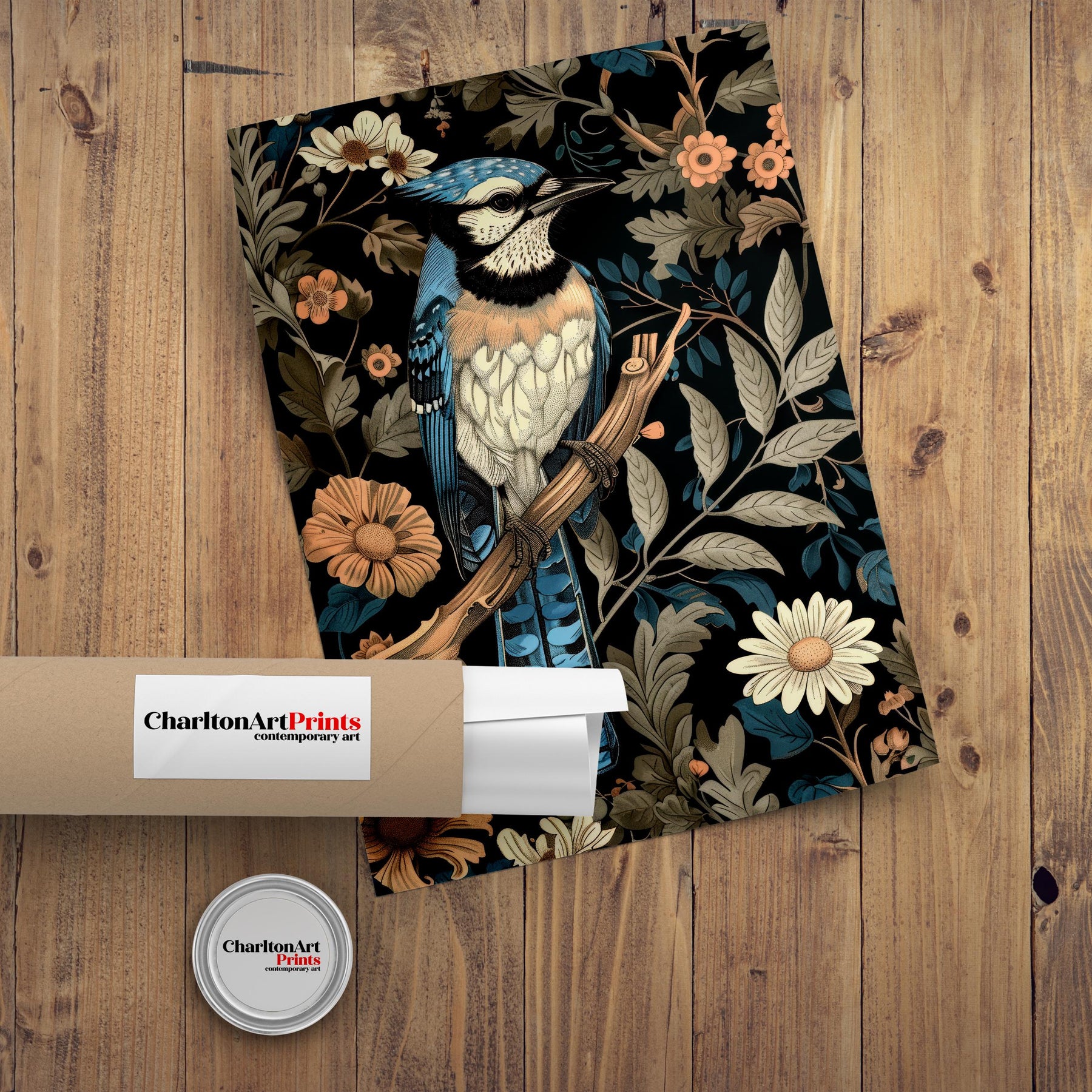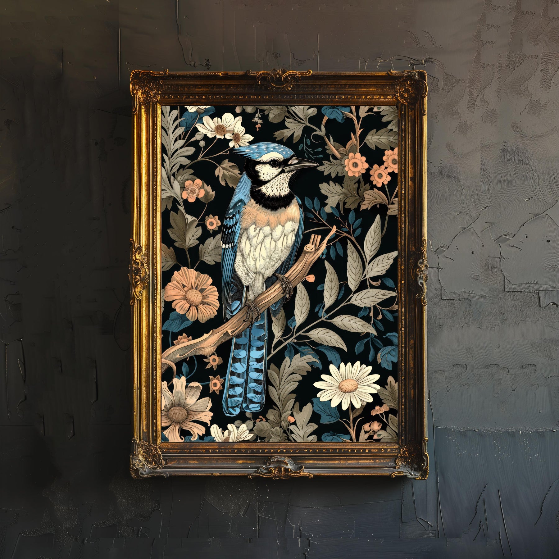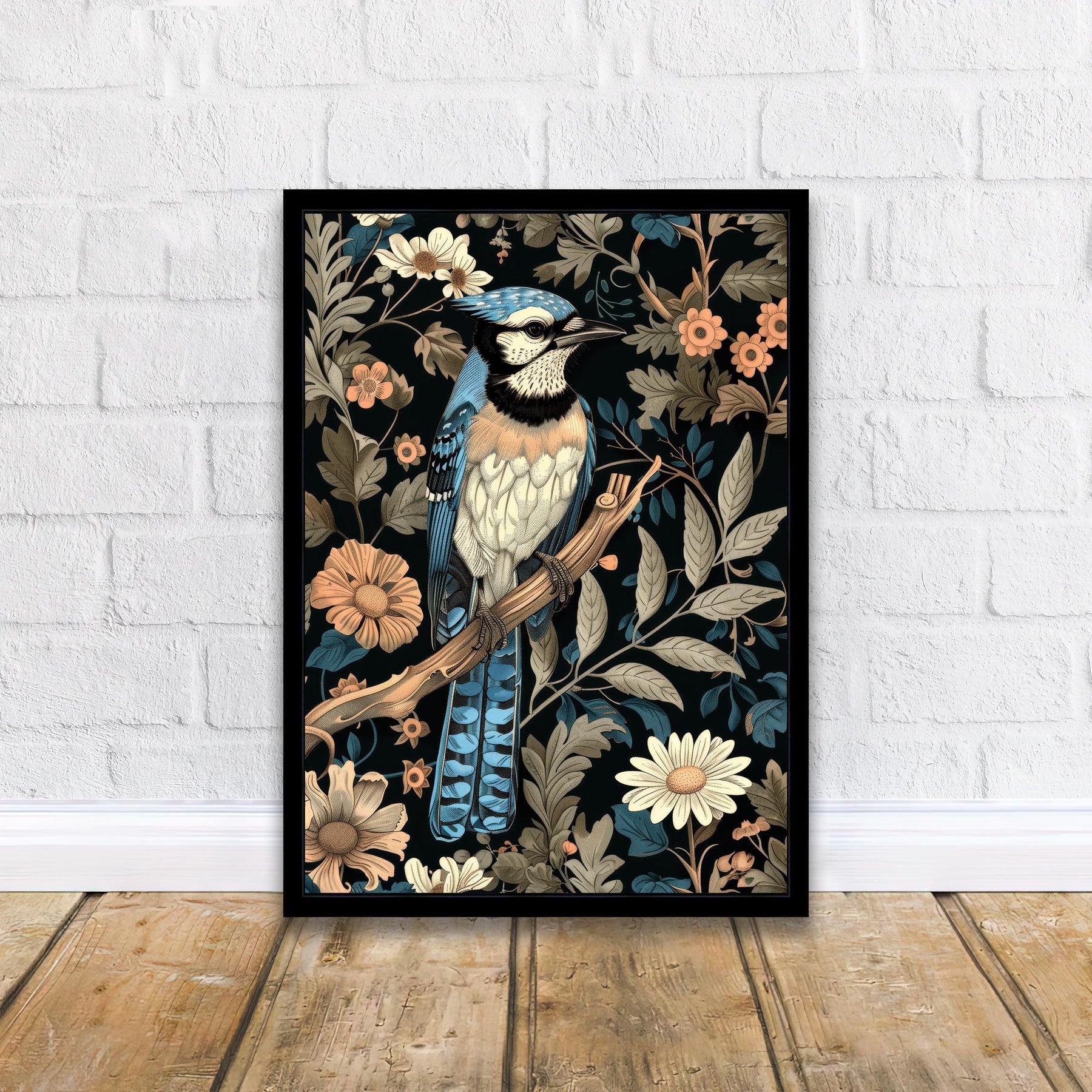 Dive into a world of enchanting design with our Blue Jay in a Floral Pattern Poster. This captivating artwork reimagines a striking blue jay surrounded by an intricate, repeating floral and foliage pattern in the iconic style of William Morris. The ornate, flowing lines and rich, earthy colors evoke a sense of rustic cottagecore charm and timeless, vintage elegance. Perfect for adding a touch of sophisticated, historical art to your living room, study, or cozy nook. Printed on high-quality, eco-friendly paper, this artwork is both visually stunning and a sustainable choice.