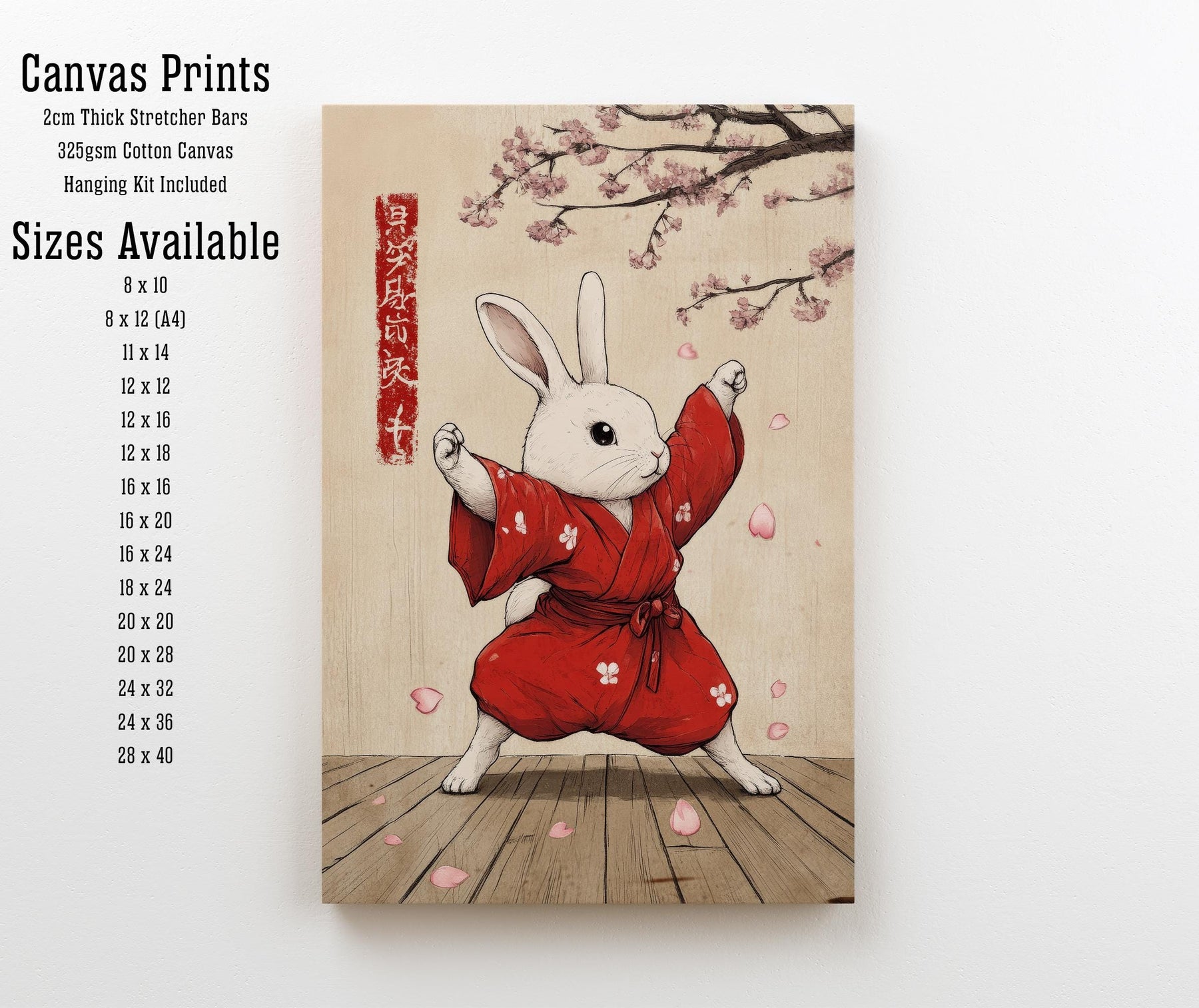 Kung Fu Rabbit Japanese Art Print Whimsical Poster Ukiyo-e Style Bunny Wall Art for Cozy Homes Martial Arts and Animal Lover Decor