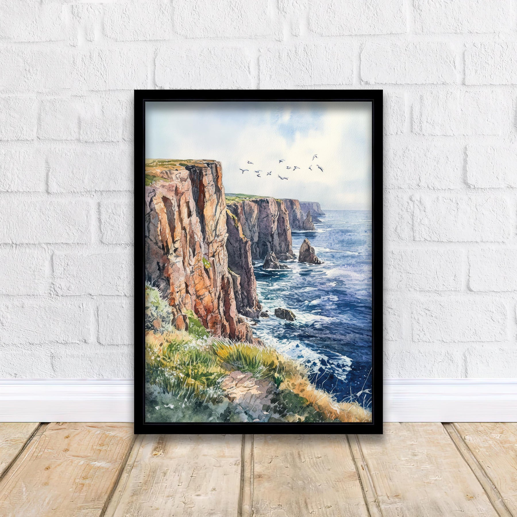 20% OFF all prints, frames & canvases with code 20BACKExperience the breathtaking beauty of Land's End, Cornwall, with this stunning watercolor painting. Known for its dramatic cliffs, rugged coastline, and stunning views of the Atlantic Ocean, Land’s End is one of the most iconic locations in the UK. This watercolor print captures the essence of this awe-inspiring landmark, featuring its rocky outcrops and the sweeping seascape. Perfect for lovers of Cornwall, coastal landscapes, or anyone enchanted by the wild beauty of Land's End, this painting brings the spirit of Cornwall into your home.