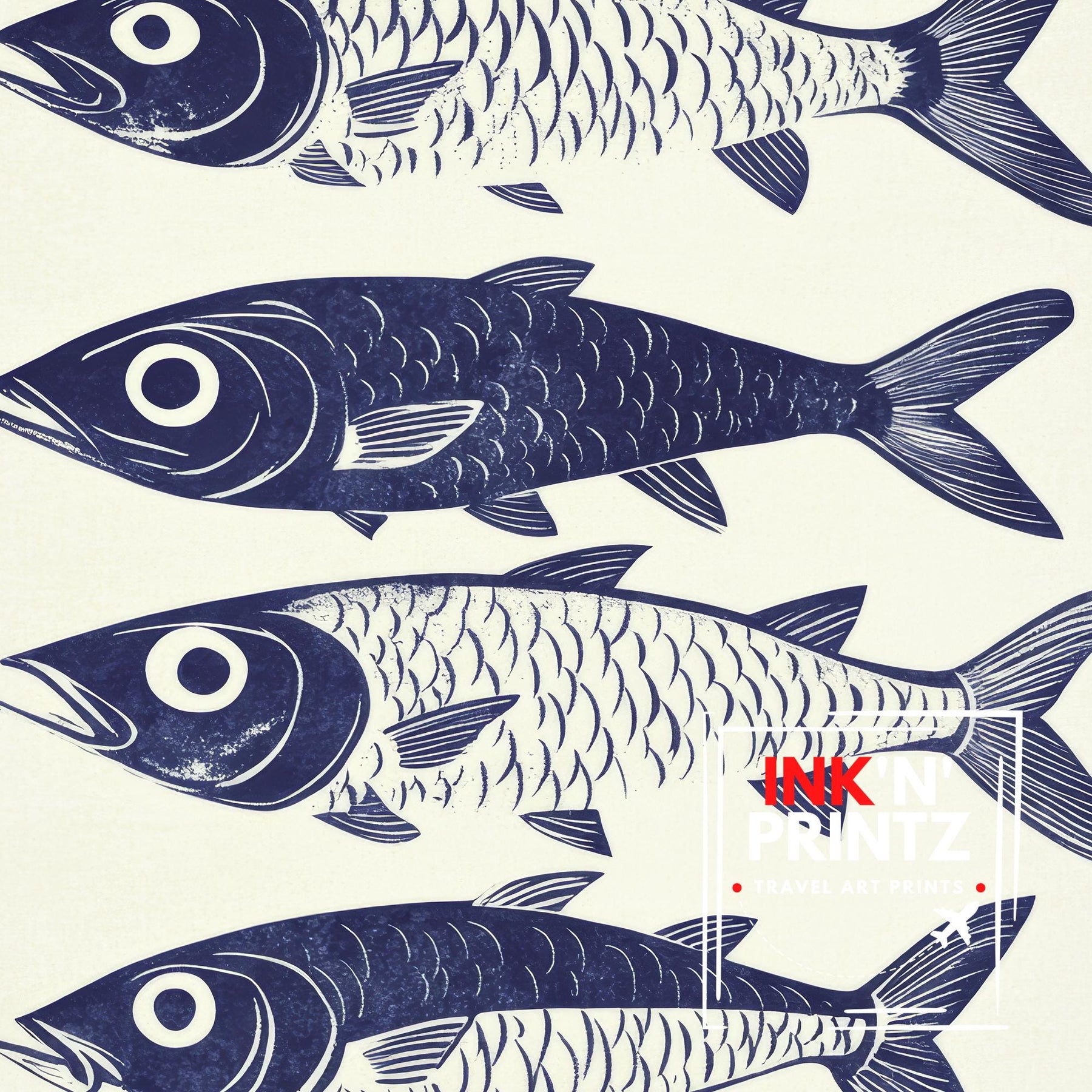 Bring seaside flavor to your space with this Mackerel Kitchen Poster. Featuring a beautifully illustrated mackerel in a vintage style, this artwork is perfect for coastal kitchens, seafood lovers, and nautical-inspired homes. Its bold composition and rustic charm add freshness and character to any cozy culinary corner.