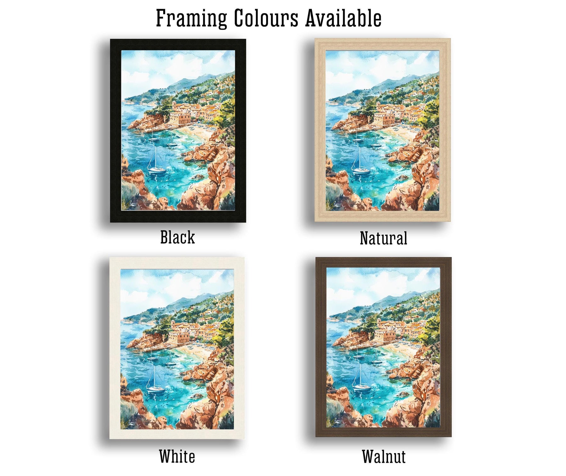 Capture the sun-drenched beauty and diverse landscapes of Mallorca with this stunning watercolor art print. This painting beautifully portrays the largest of the Balearic Islands, from its serene Mediterranean beaches and crystal-clear coves to the dramatic peaks of the Serra de Tramuntana mountains. It evokes the spirit of a Spanish paradise, famous for its charming villages, vibrant culture, and breathtaking scenery. This print is a perfect gift for beach lovers, a memento for those who have visited Mallorca, or a wonderful way to bring a piece of this island paradise into your home.