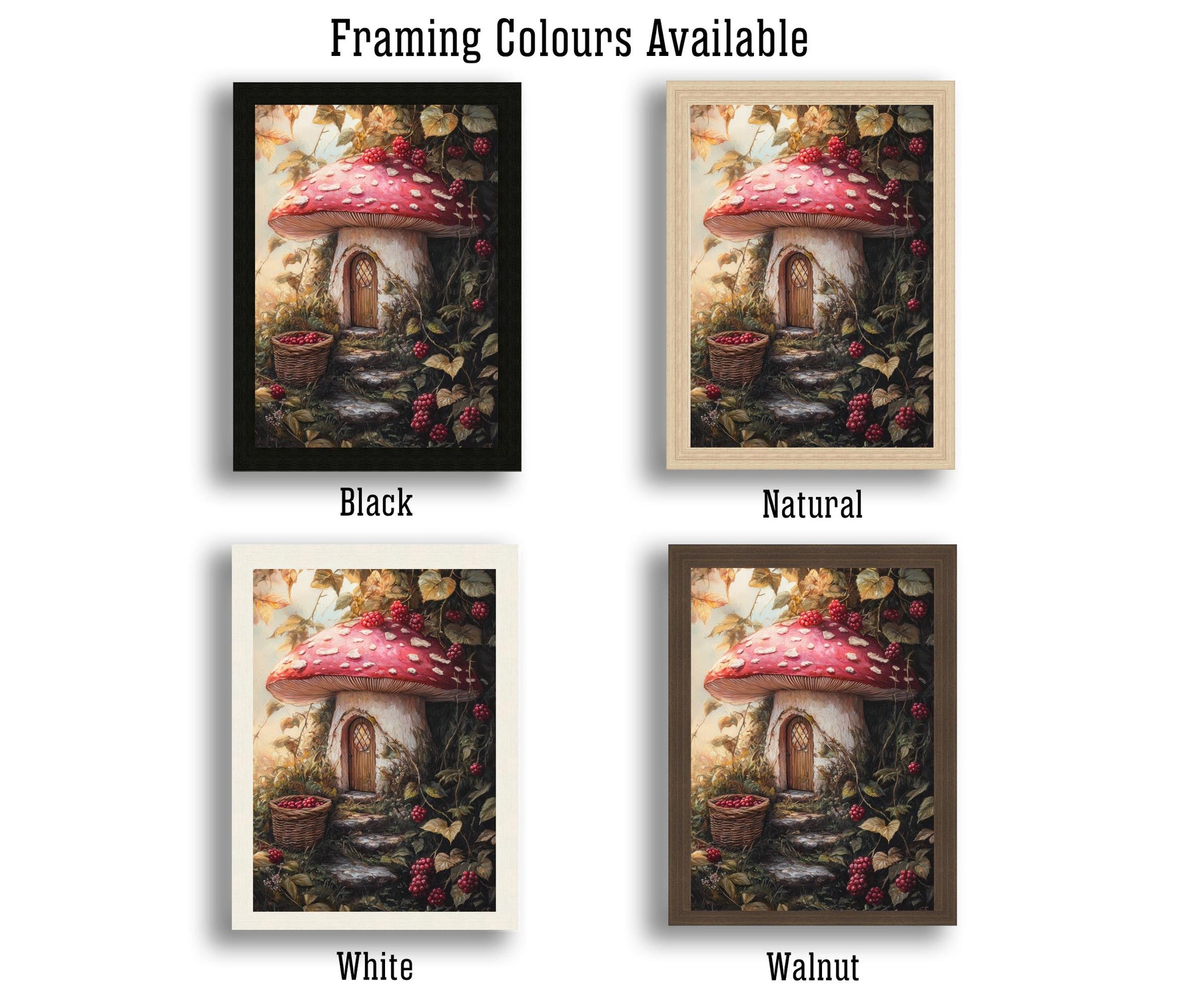 Raspberry Lane Toadstool Cottage Art Print Cottagecore Decor Whimsical Mushroom Wall Art Vintage Nature Poster for Cozy Homes and Garden