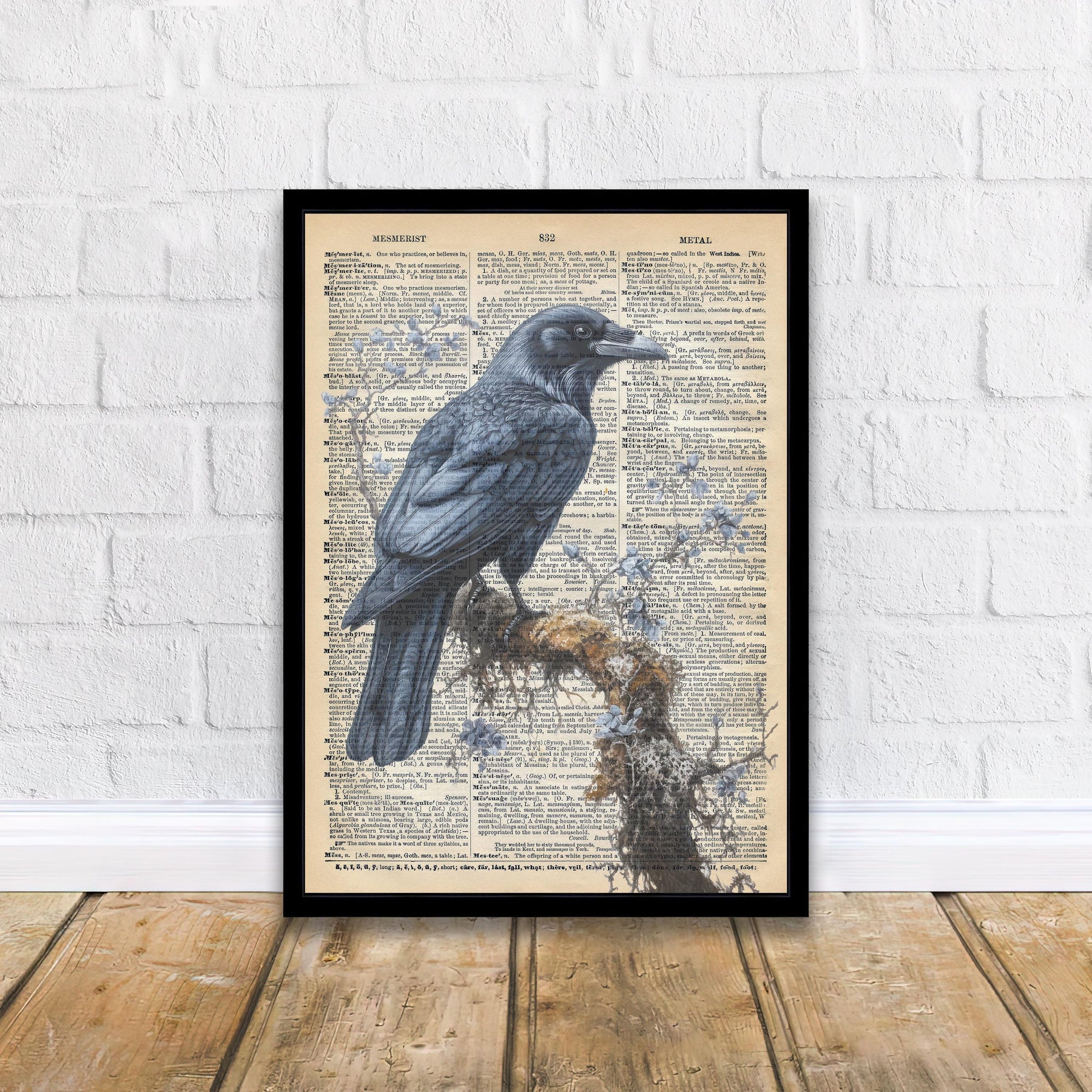 Raven Encyclopedia Poster Vintage Nature Wall Art Cottagecore Decor Scientific Bird Illustration Print for Cozy Homes and Nature Inspired