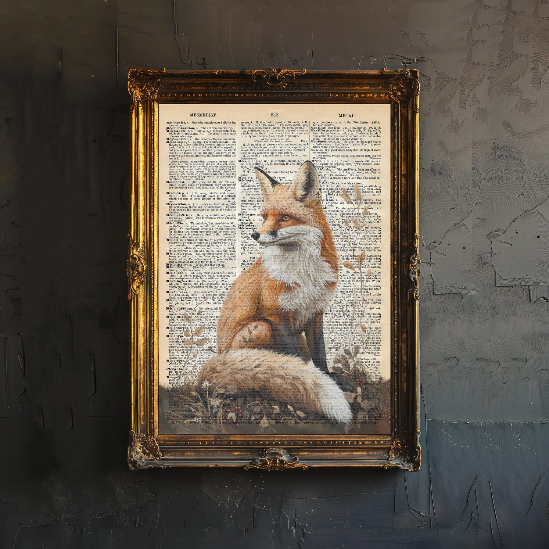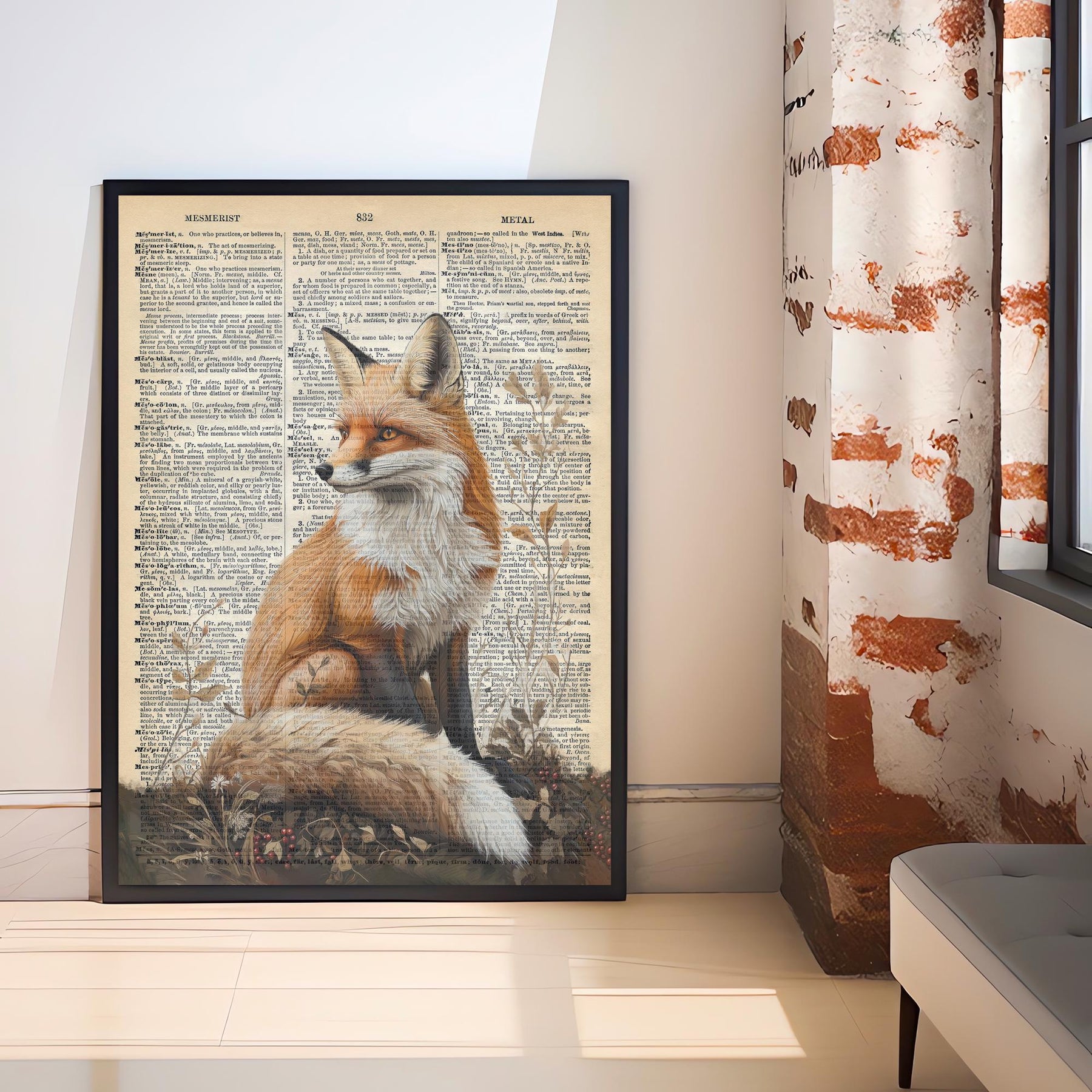 Red Fox Encyclopedia Poster Vintage Nature Wall Art Cottagecore Decor Scientific Animal Illustration Print for Cozy Homes and Nature