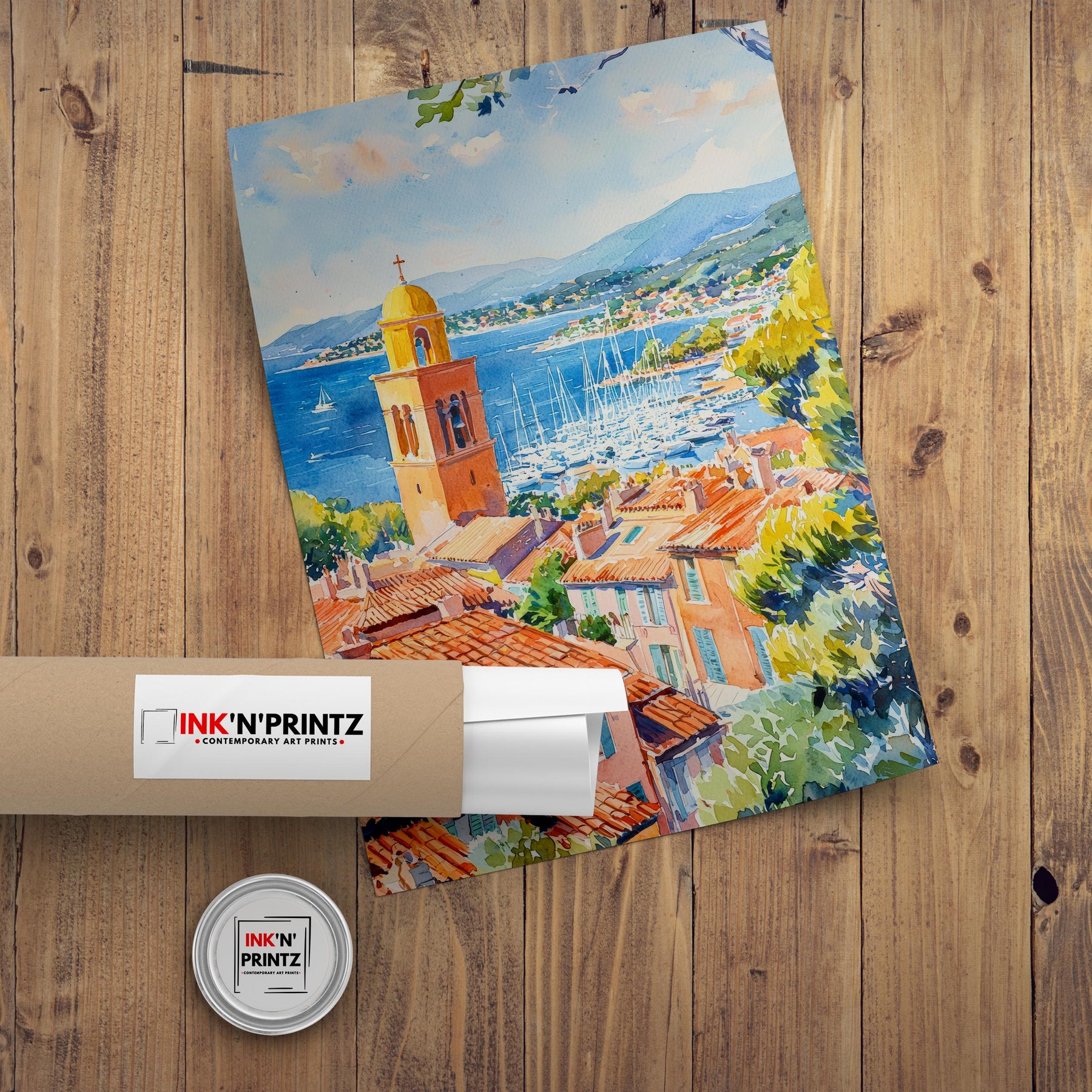 Capture the glamorous and vibrant spirit of the French Riviera with this stunning watercolor painting of Saint-Tropez. This art print showcases the iconic old port, bustling with colorful fishing boats and luxurious yachts, set against the backdrop of the charming ochre-colored houses and lively cafés. Famous for its beautiful beaches, vibrant nightlife, and a rich history as a former fishing village, Saint-Tropez is a symbol of Mediterranean elegance. This painting is the perfect gift for lovers of coastal landscapes, French travel, or anyone who cherishes the timeless allure of the Côte d'Azur.