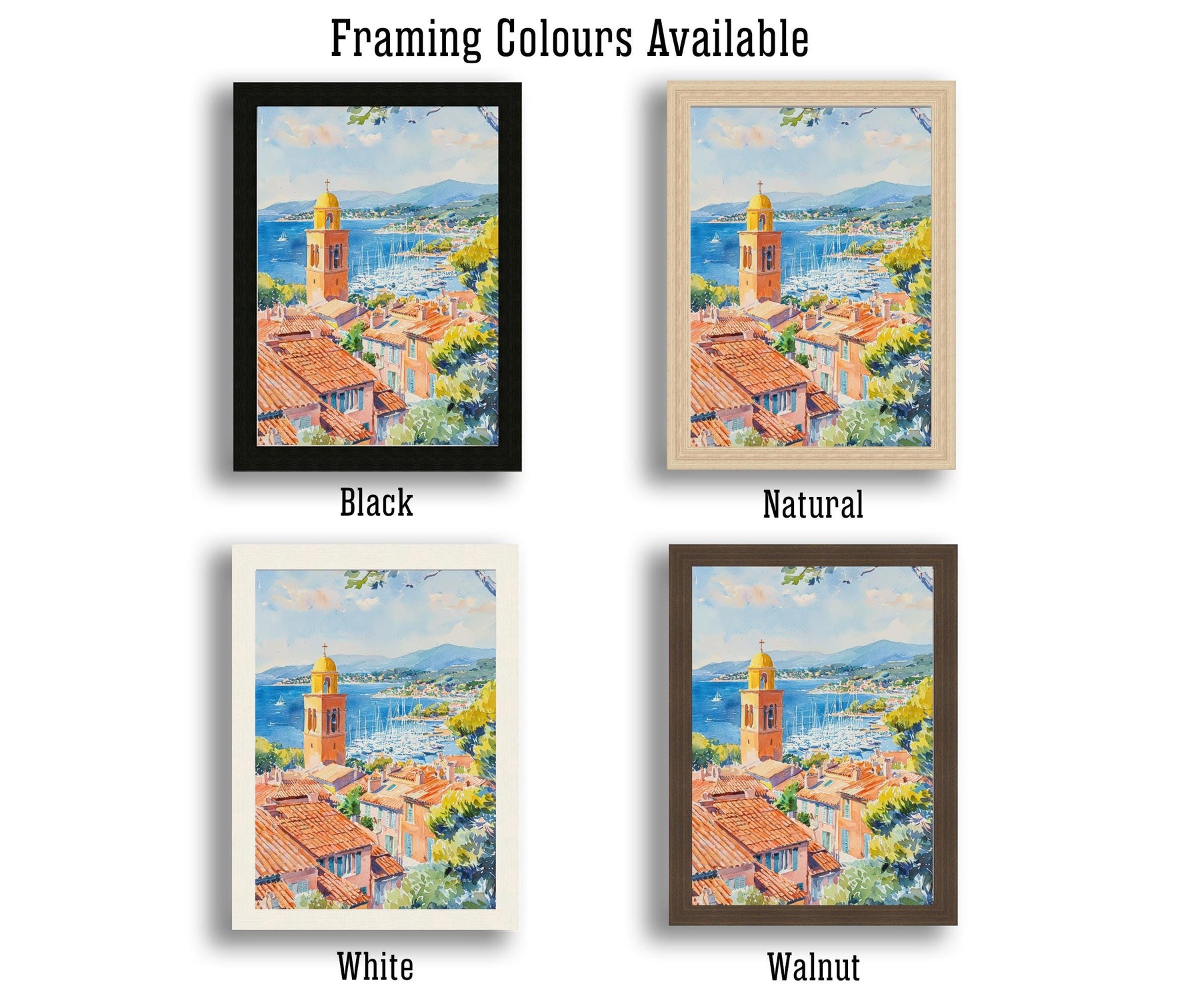 Saint-Tropez Harbor Watercolor Painting French Riviera Art Poster Coastal Town Decor Gift for France Lovers
