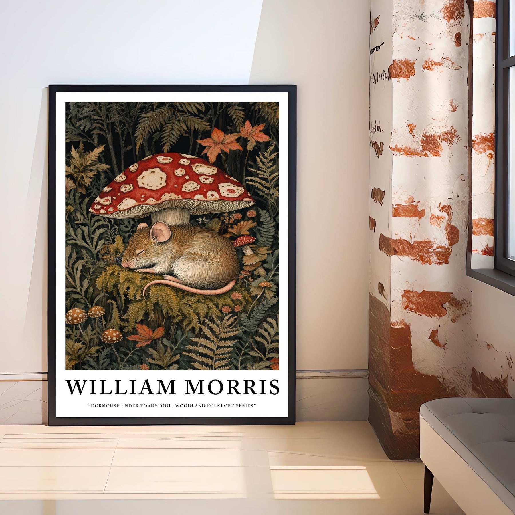 Step into a world of timeless charm with our William Morris Dormouse Under Toadstool Poster, a beautifully detailed artwork inspired by the intricate elegance of the Arts and Crafts movement. This enchanting illustration features a tiny dormouse resting beneath a toadstool surrounded by stylized leaves, berries, and woodland flora in classic William Morris design. Perfect for lovers of cottagecore warmth, fairycore whimsy, and vintage craftsmanship, this piece brings a touch of woodland magic and rustic sophistication to any space. Printed on high-quality, eco-friendly paper for lasting beauty and sustainability.