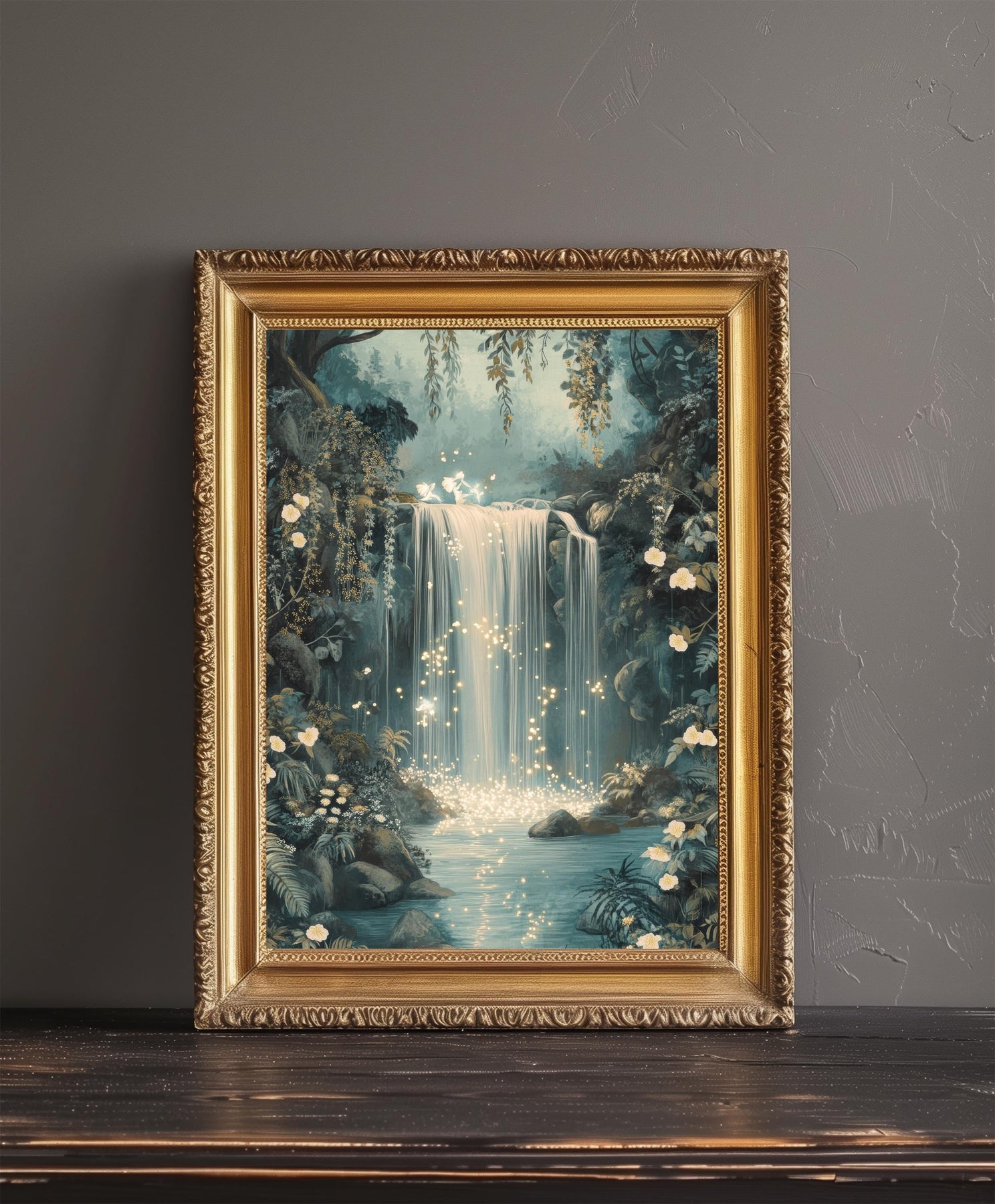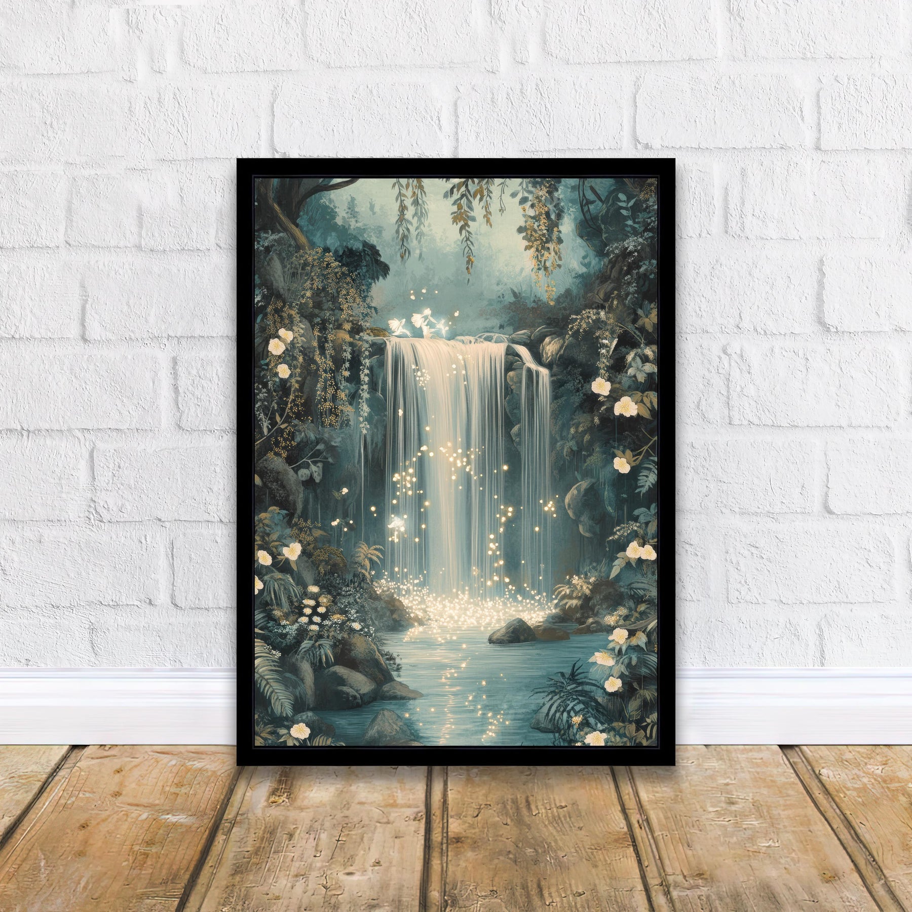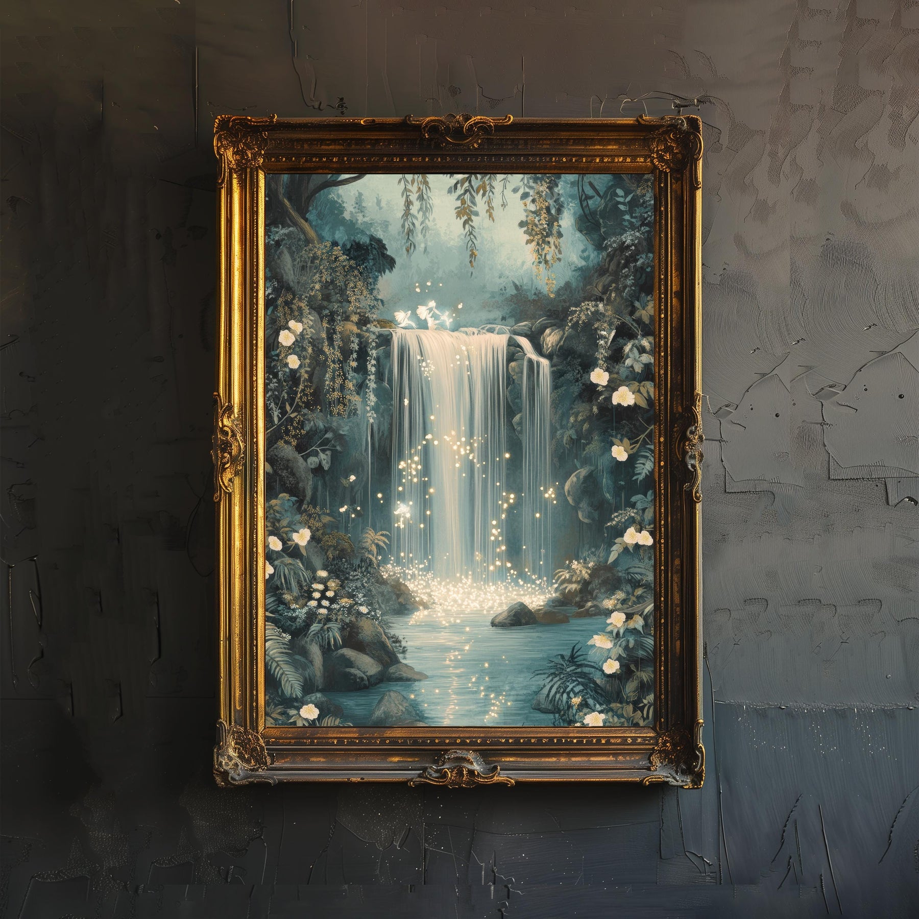 William Morris Enchanted Fairy Waterfall Art Cottagecore Decor Arts And Crafts Nature Illustration Whimsical Wall Art Print