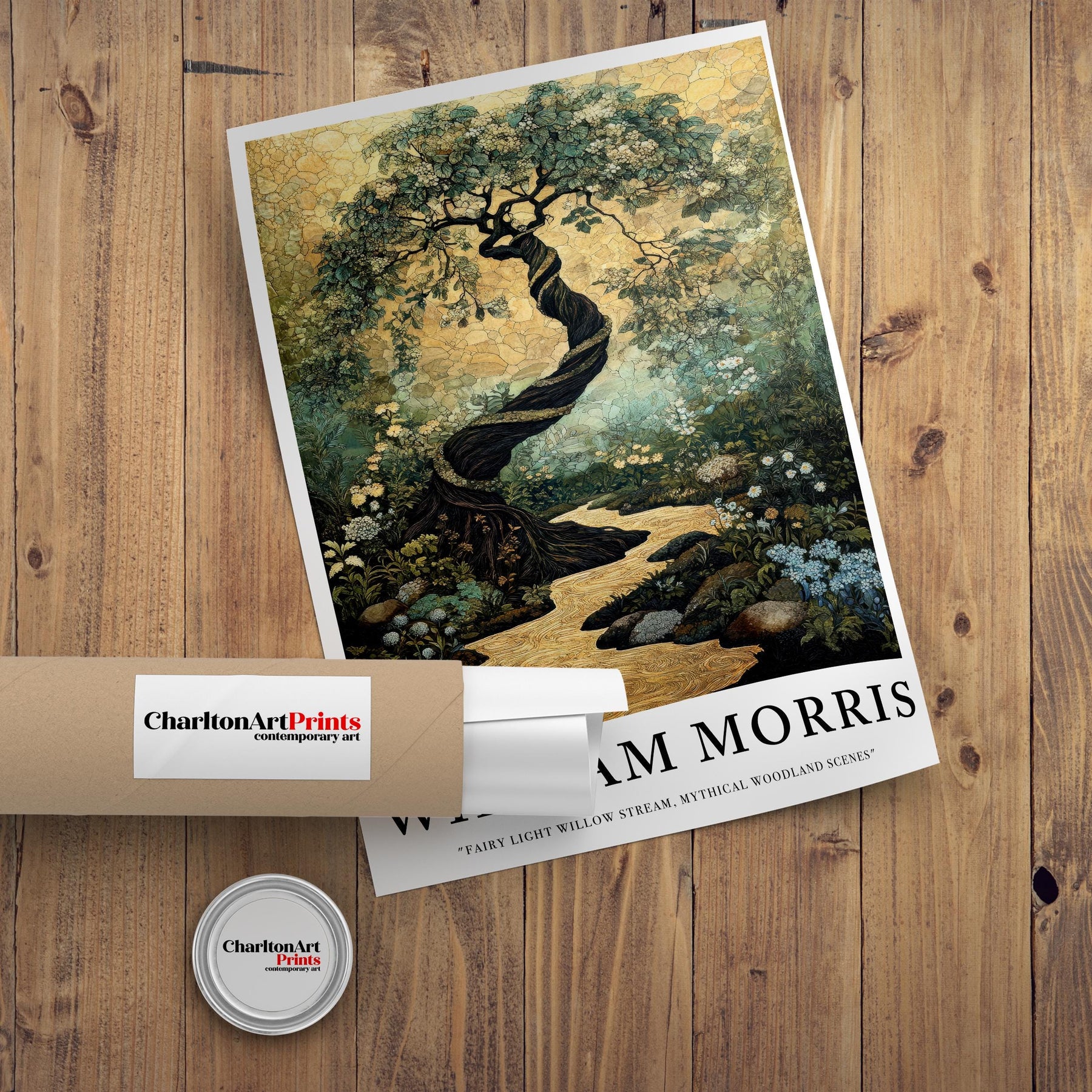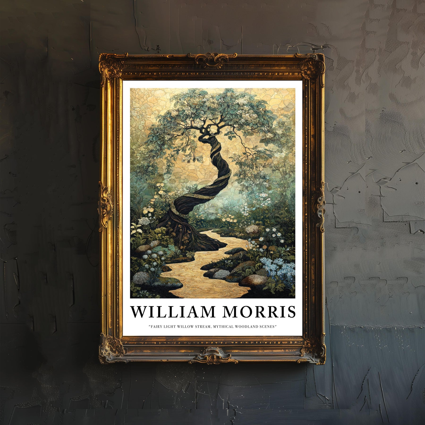 Step into an enchanted world with our William Morris Fairy Stream Poster, a mesmerizing artwork inspired by the intricate elegance of the Arts and Crafts movement. This magical illustration depicts a moonlit stream winding through a forest alive with delicate fairies, framed by lush foliage and floral motifs in classic William Morris style. Perfect for lovers of fairycore wonder, cottagecore serenity, and vintage-inspired interiors, this piece adds warmth, mystery, and timeless charm to any room. Printed on high-quality, eco-friendly paper for enduring beauty and sustainability.