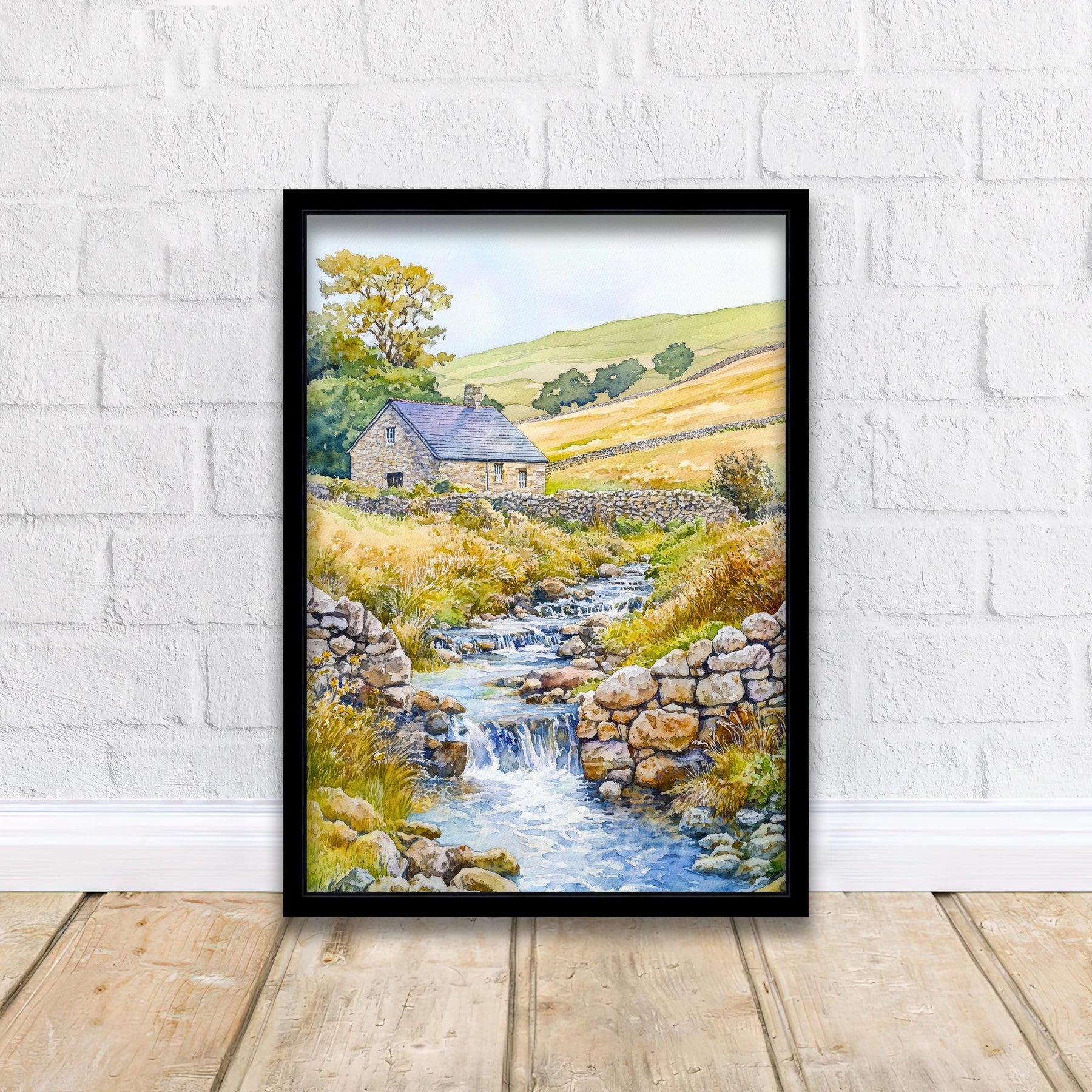 Experience the serene beauty of the Yorkshire Dales with this captivating watercolor print. Featuring the rolling hills, lush valleys, and tranquil rivers that define this picturesque English region, this artwork captures the essence of the Dales in soft, flowing watercolor tones. The vibrant greens and blues of the landscape evoke the peaceful atmosphere of the countryside, making it a perfect addition to any nature lover's collection. Ideal for those who cherish the natural beauty of England, this watercolor print brings the spirit of the Yorkshire Dales into your home.